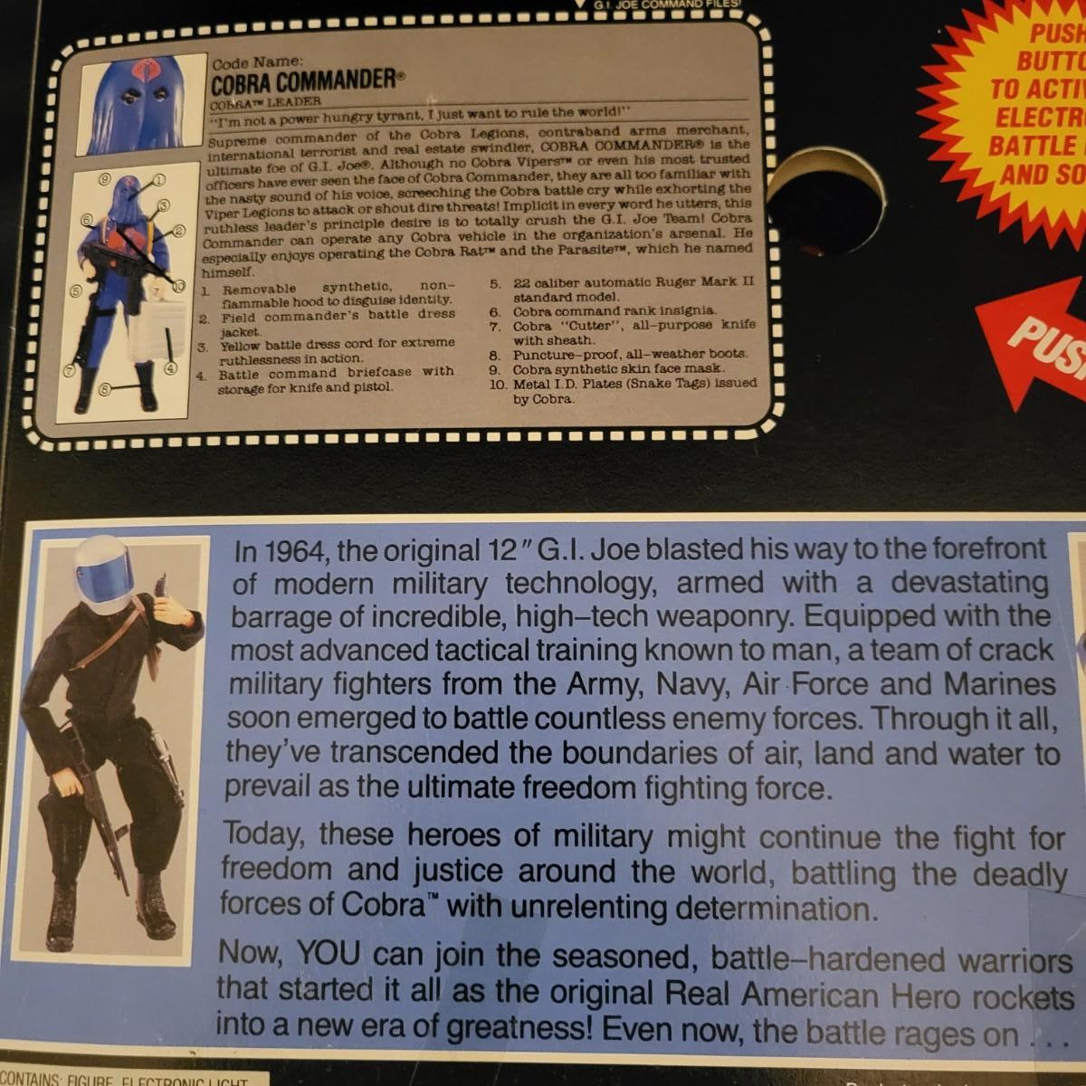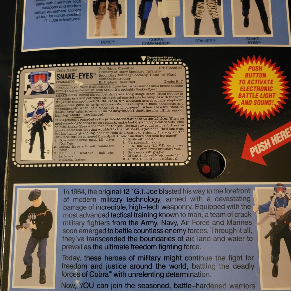 A collection of 10 GI Joe 12" action figures from the early 90s in their original packaging. All of these appear to be in excellent condition with all of the various accessories present, but the boxes have been opened, taped shut and some show minor damage. Overall, packaging is in good condition. Largest box measures approximately 9" x 13" x 2.5" Shipping available