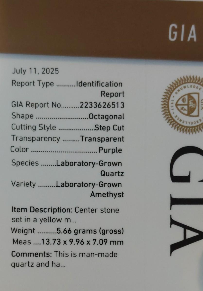 GIA CERTIFIED LAB GROWN AMETHYST RING