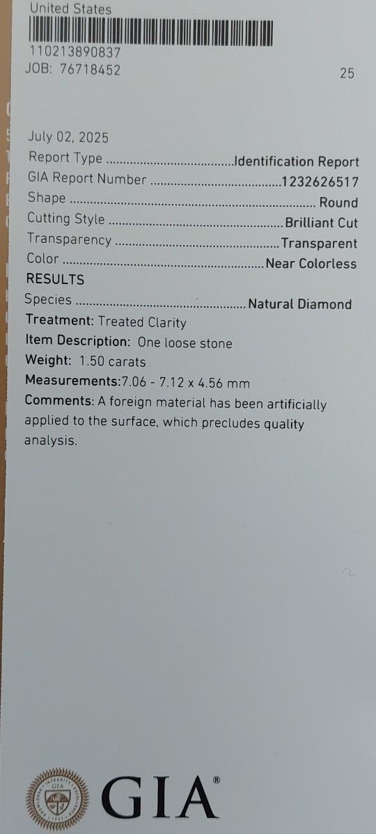 GIA CERTIFIED NATURAL EARTH MINED DIAMOND 1.49 cts