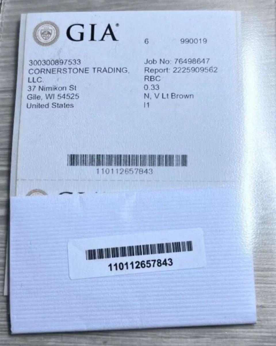 GIA Certified Round Brilliant .33 CT I1 Loose Natural Diamond with Appraisal