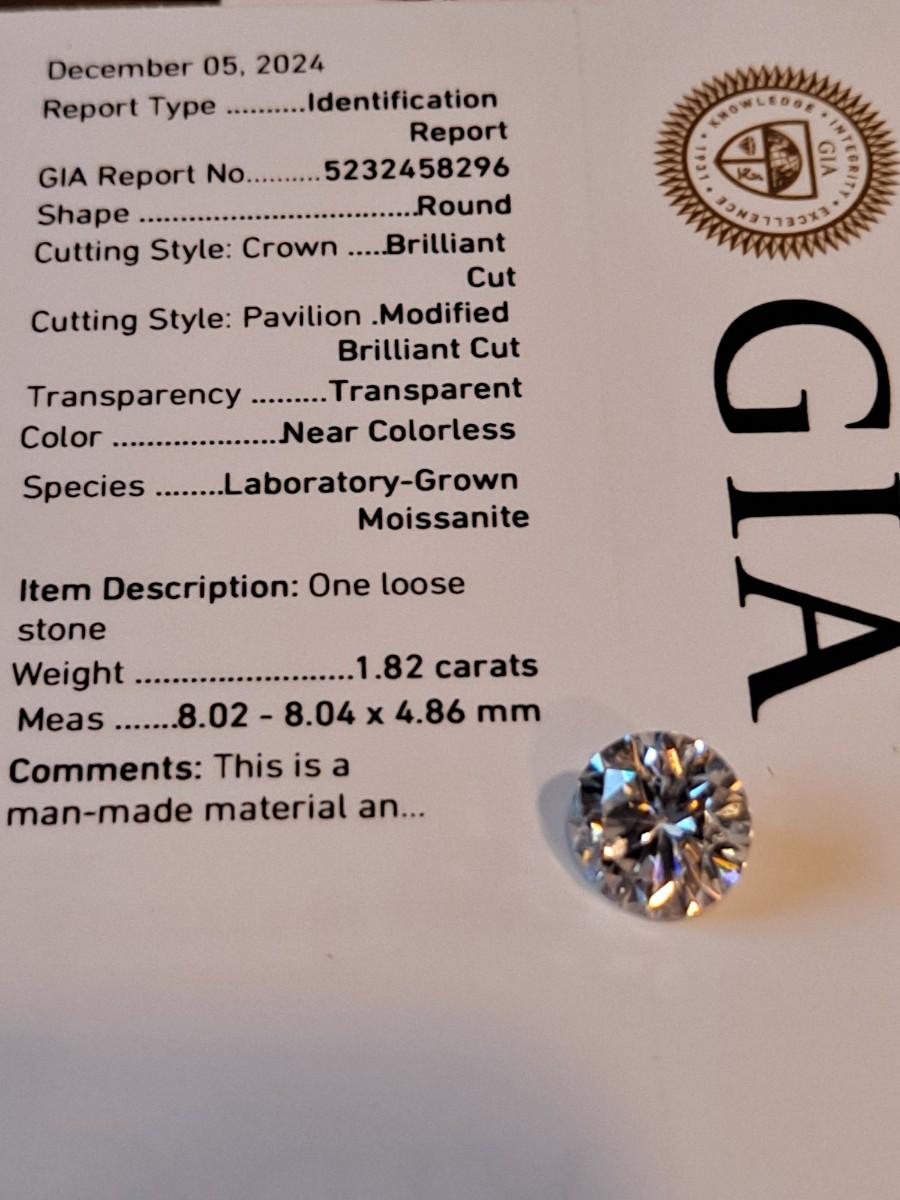 GIA LAB CREATED MOISSANITE 1.82 CTS