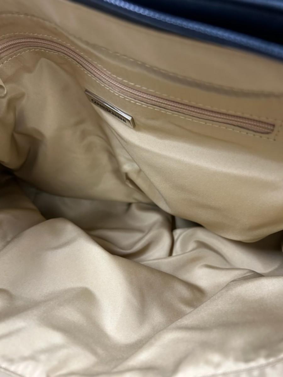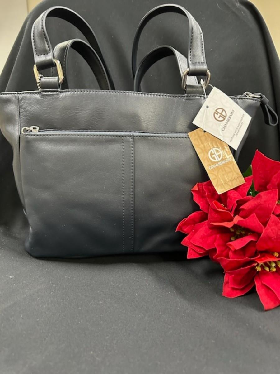 New with tags, zipper closure on one side, open pouch on the other side. Interior has 1 zipper pouch.