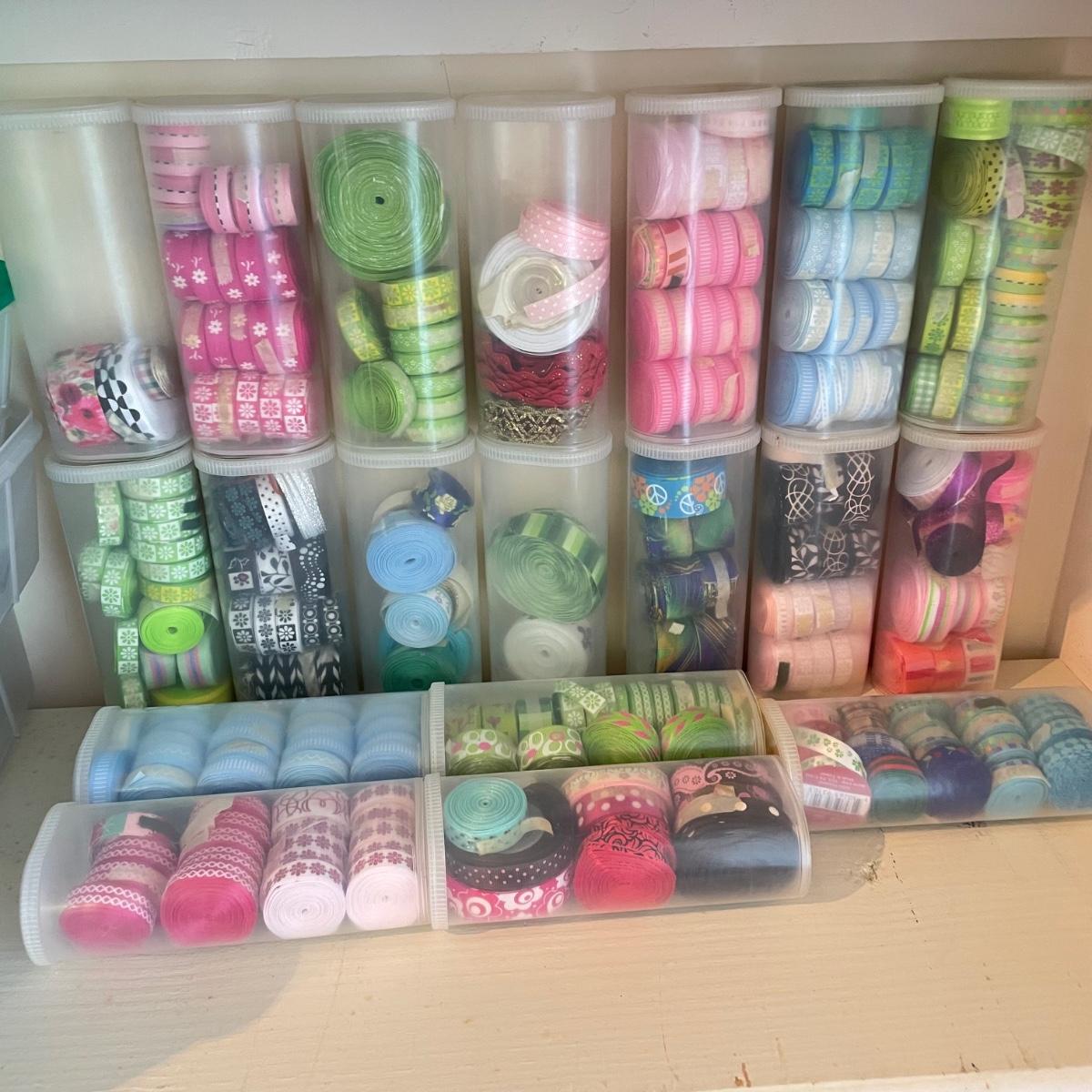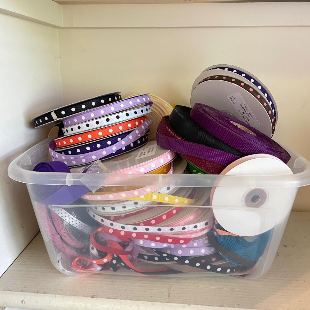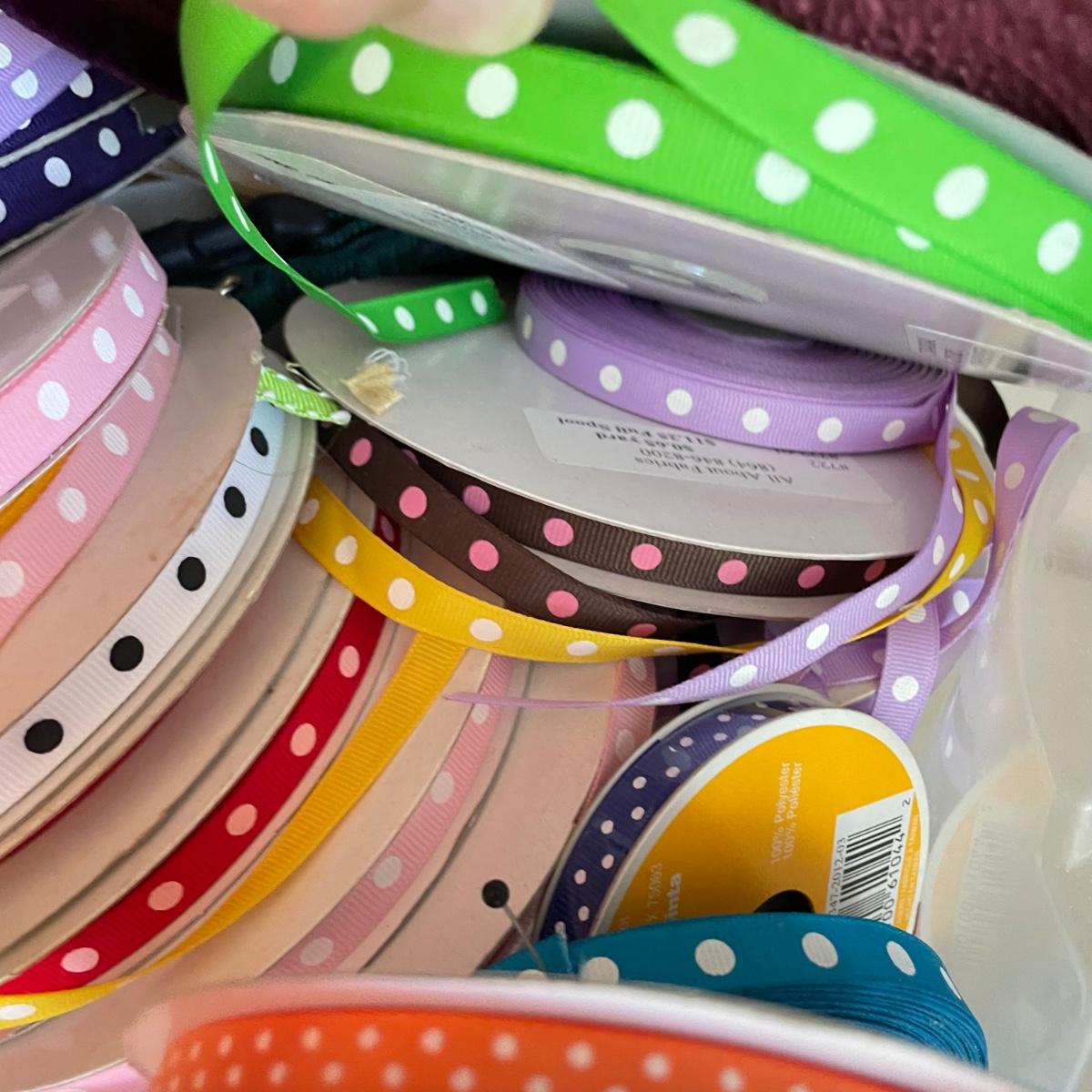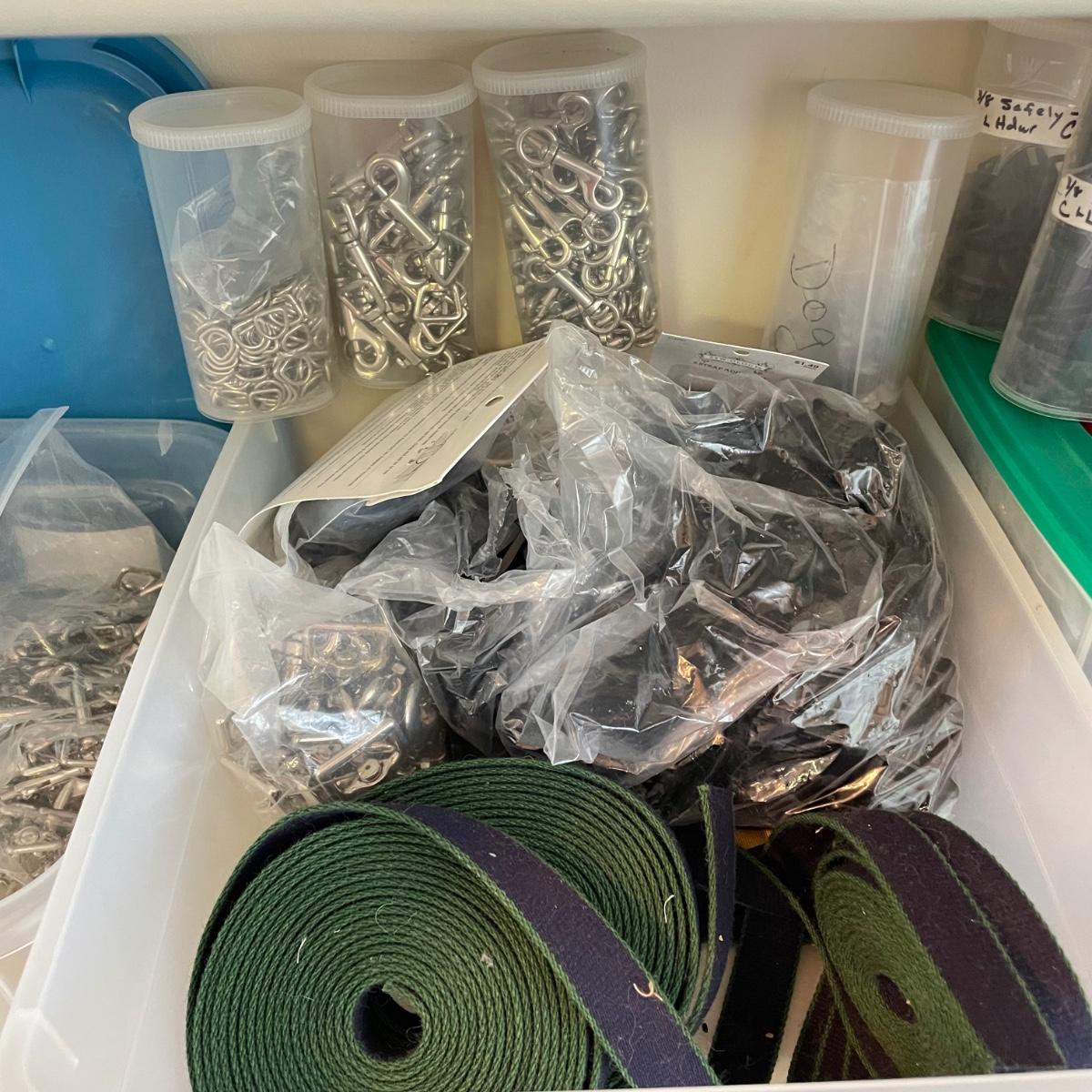 All the supplies needed to make a plethora of pet collars. Lot includes a huge variety of what appears to be mostly nylon ribbon (thick and thinner), plus decorative ribbon, metal D rings, attachment clips, buckles. Lot also has a pet craft magazine. Total inventory photo has a yard stick pictured for reference, it is not included in the lot. See images. Local pick up Only