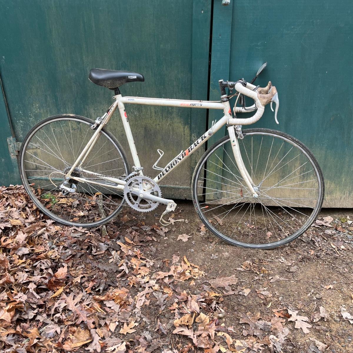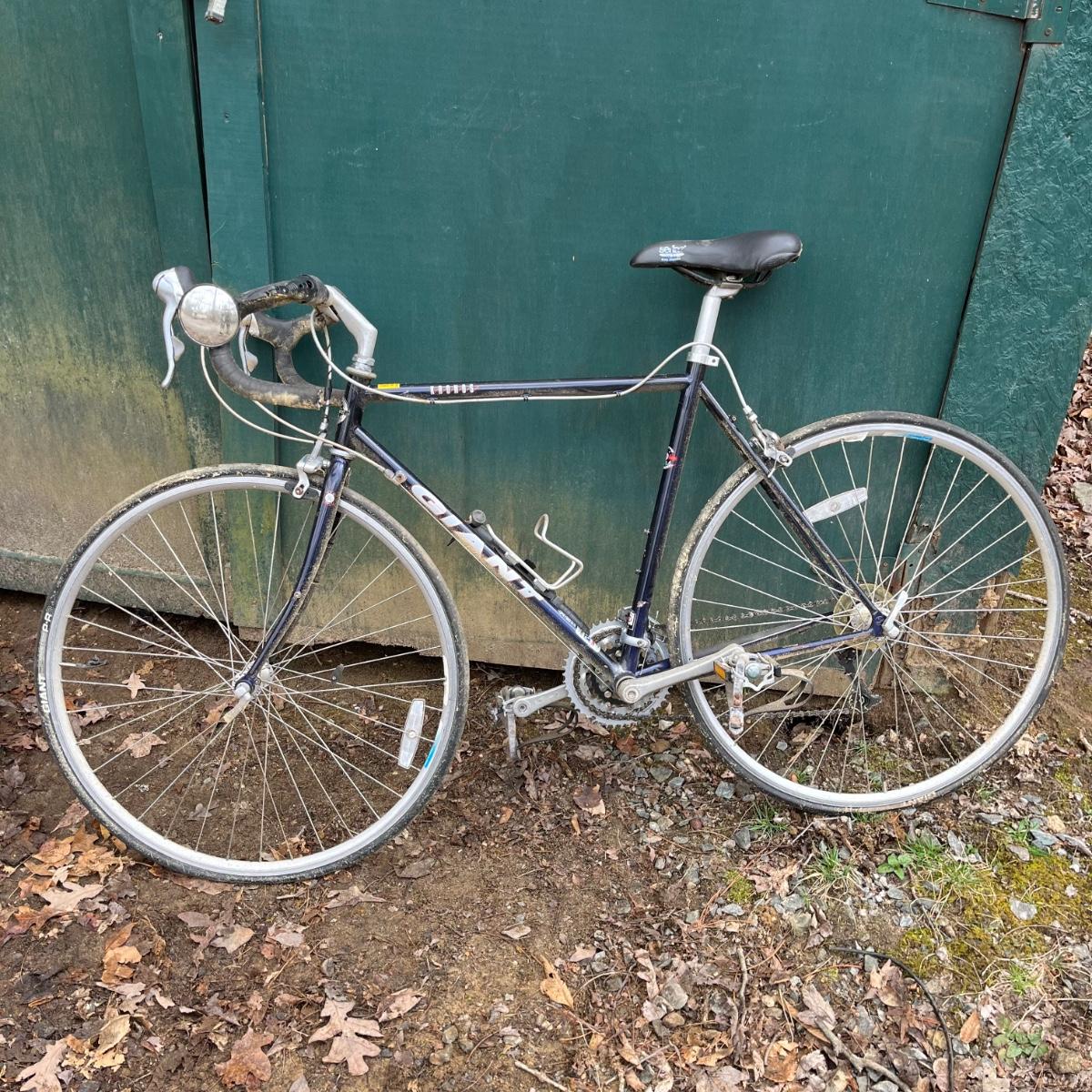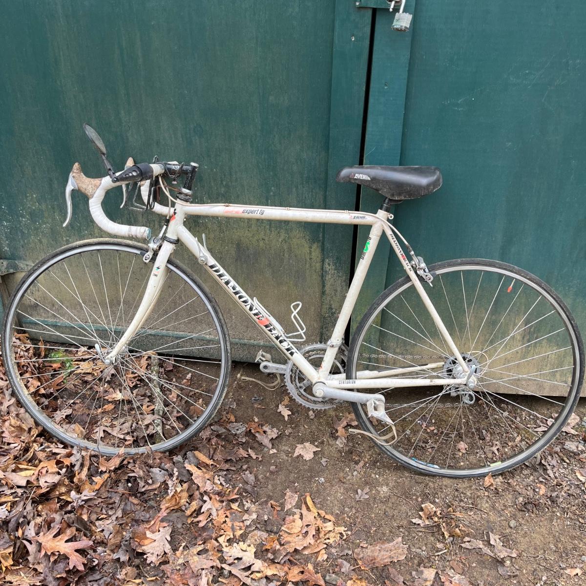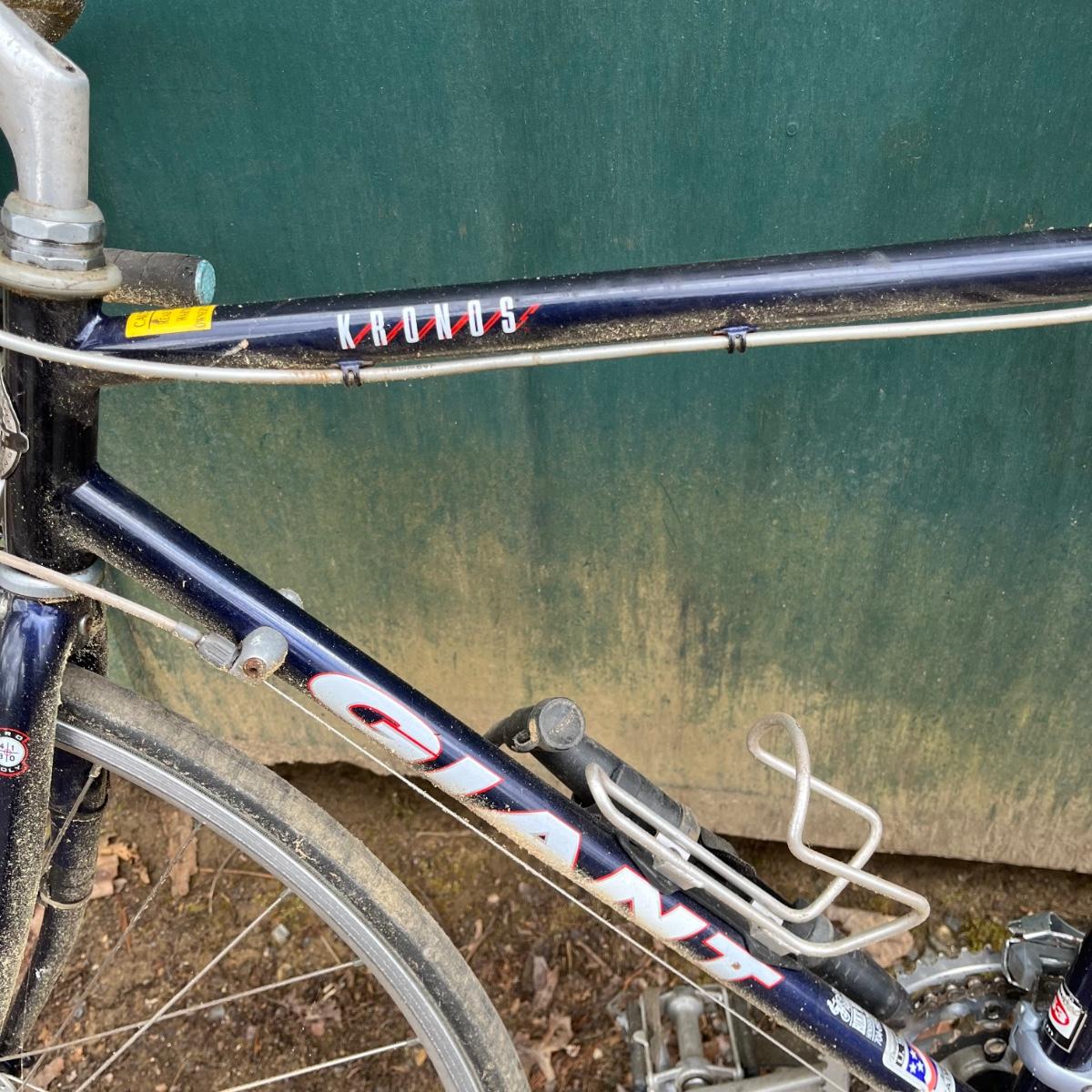 Lot includes a 53 CM Giant Kronos 21 speed road bike with the Shimano RSX brakes and a Diamond Back 14 speed with RSX 100 set. Both bicycles have been sitting and have flat tires.