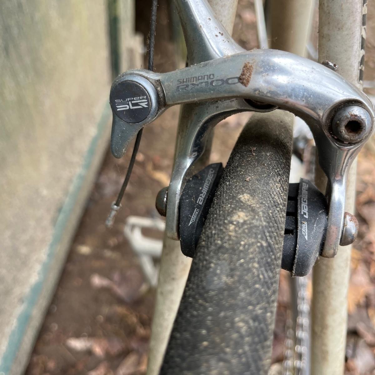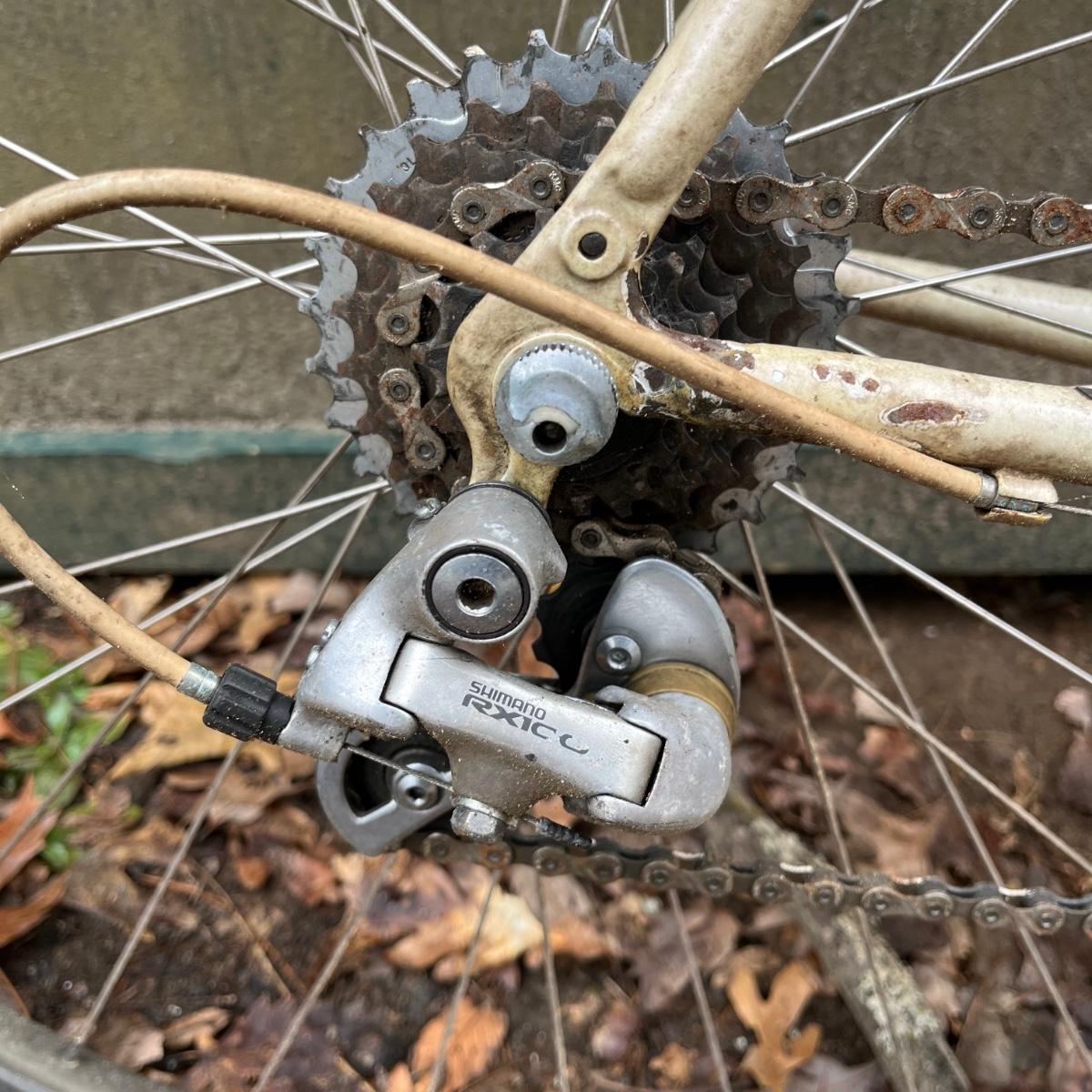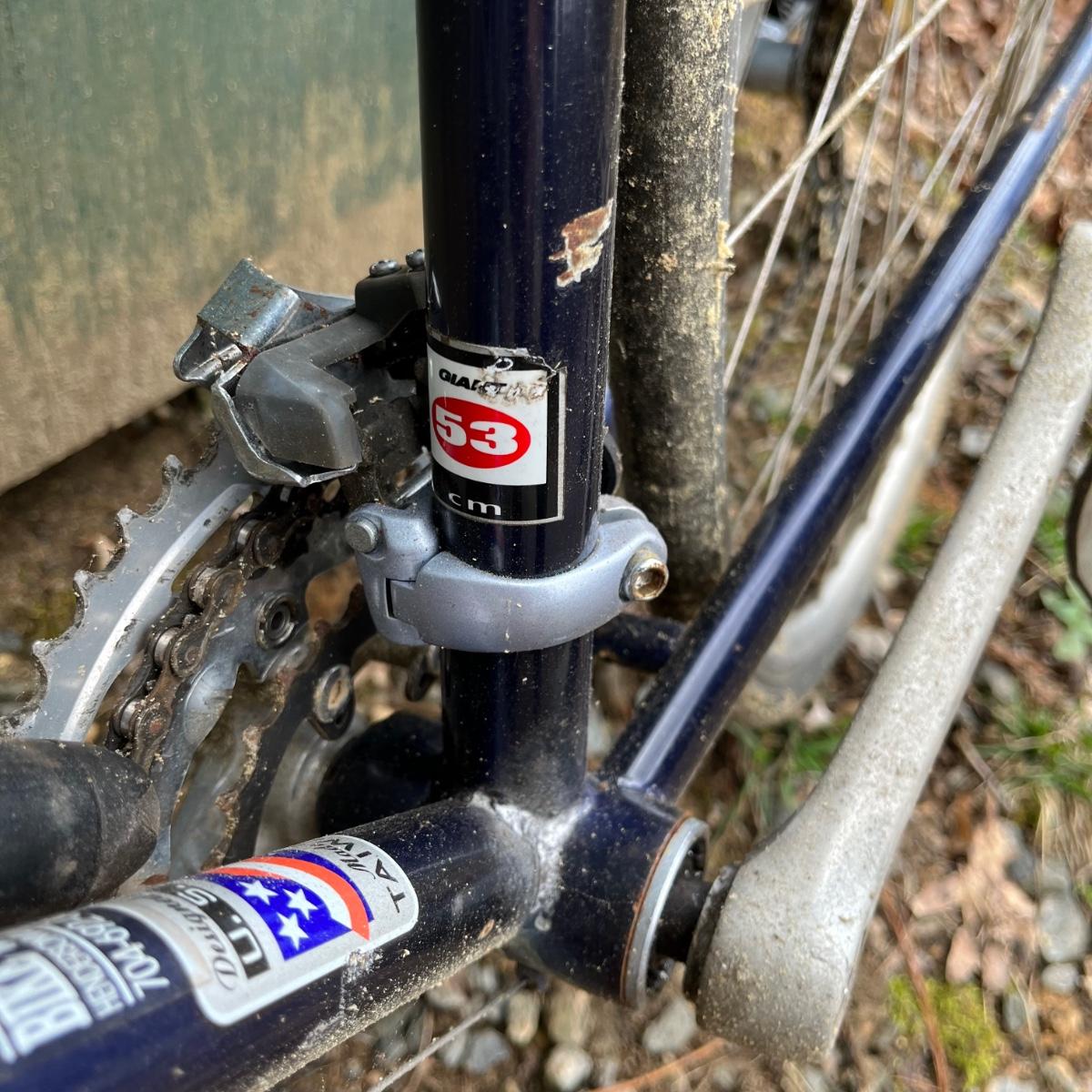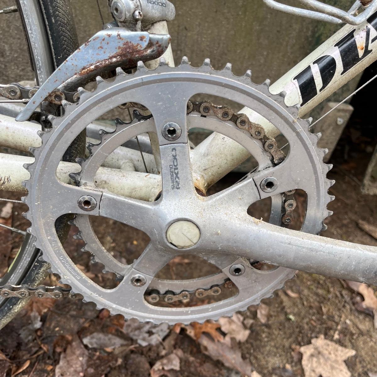 Lot includes a 53 CM Giant Kronos 21 speed road bike with the Shimano RSX brakes and a Diamond Back 14 speed with RSX 100 set. Both bicycles have been sitting and have flat tires.
