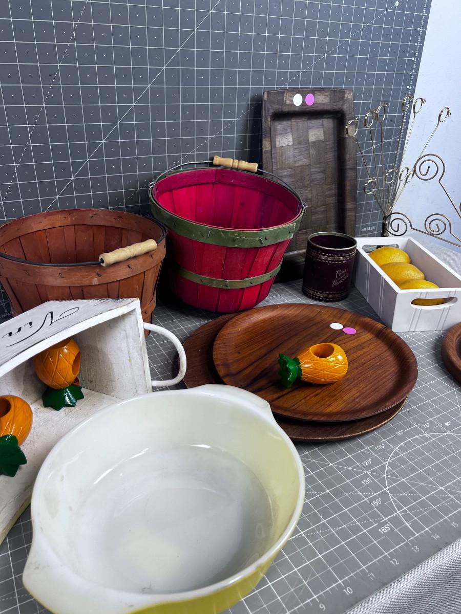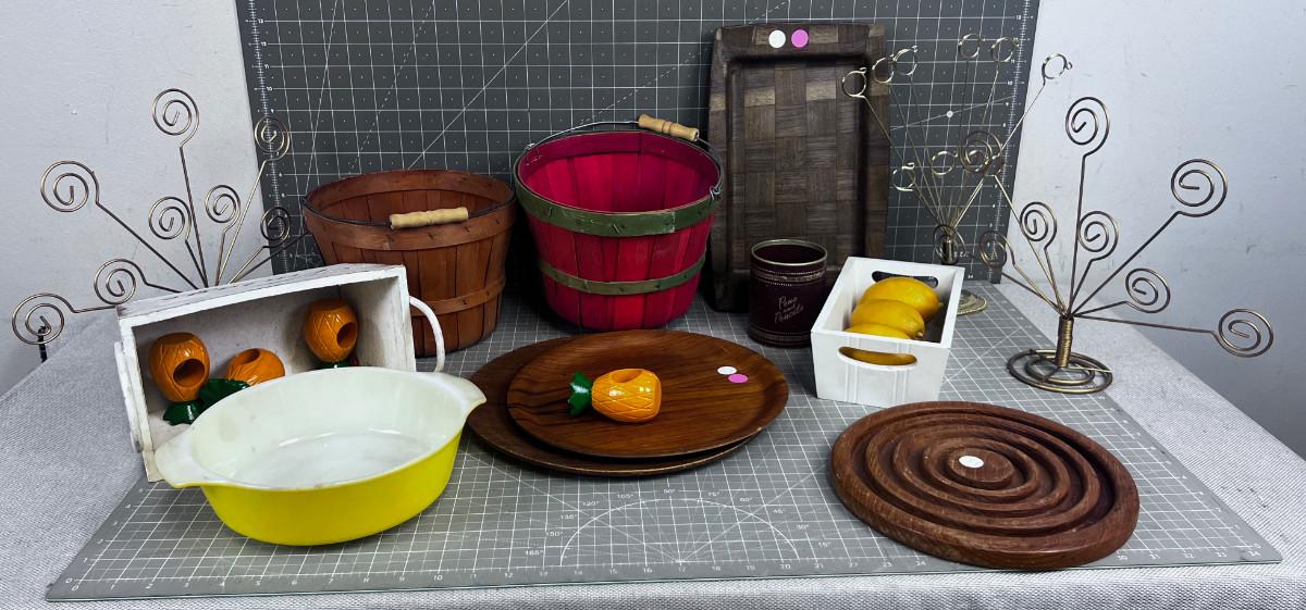 Giant Lot of Baskets, Wood Vintage Serving, Photo items