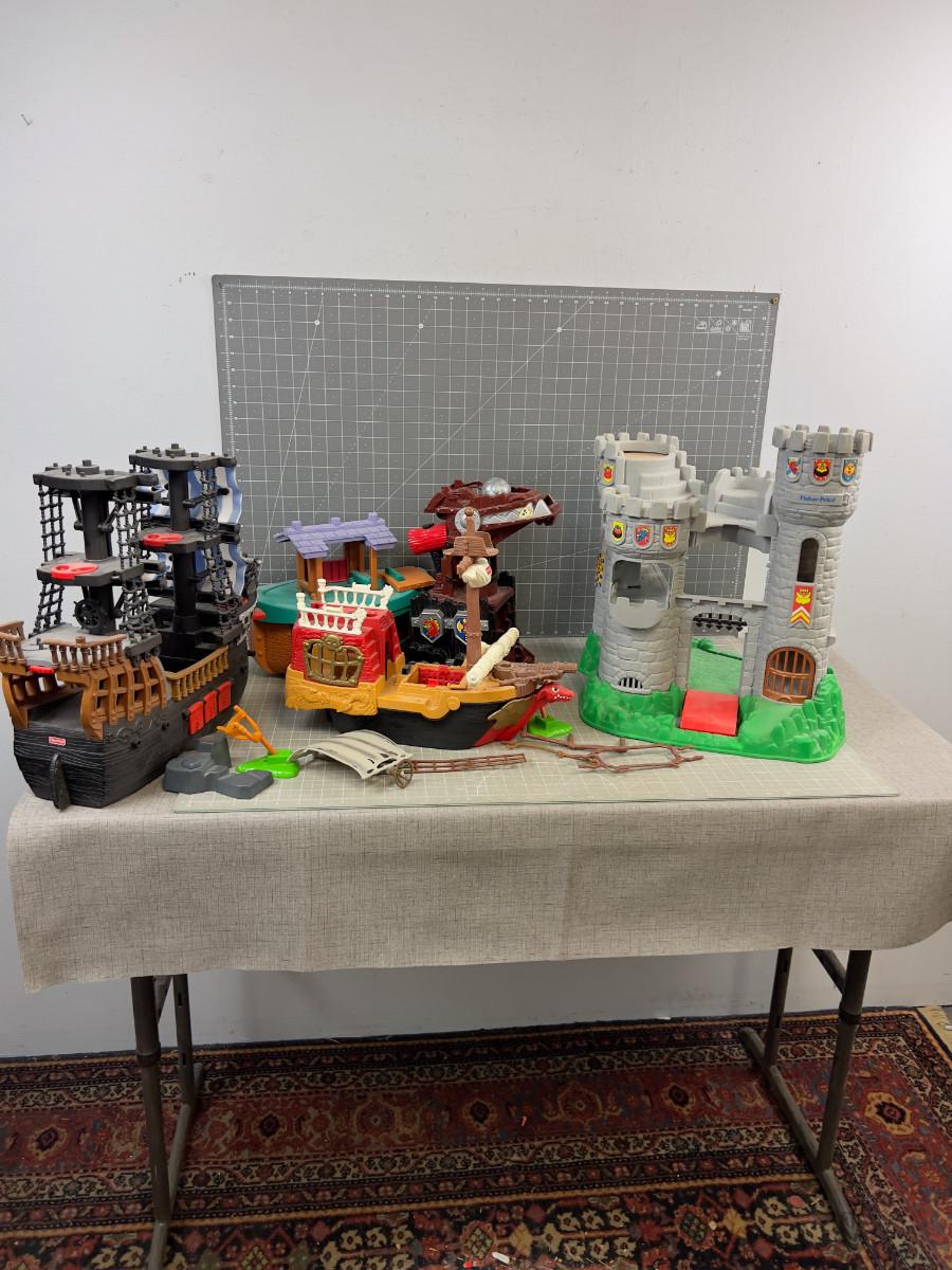 GIANT LOT OF Fisher Price TOYS: Large Scale, Plastic Castle, Ark & Pirate Ship
