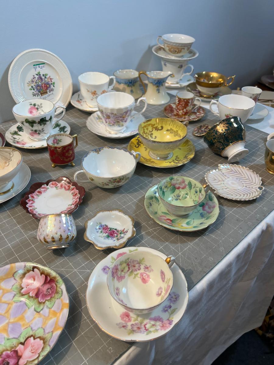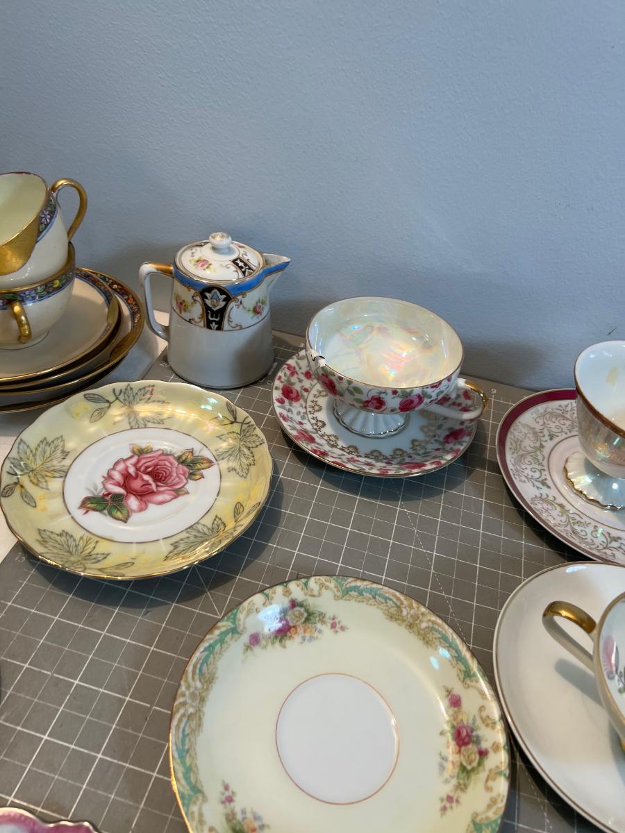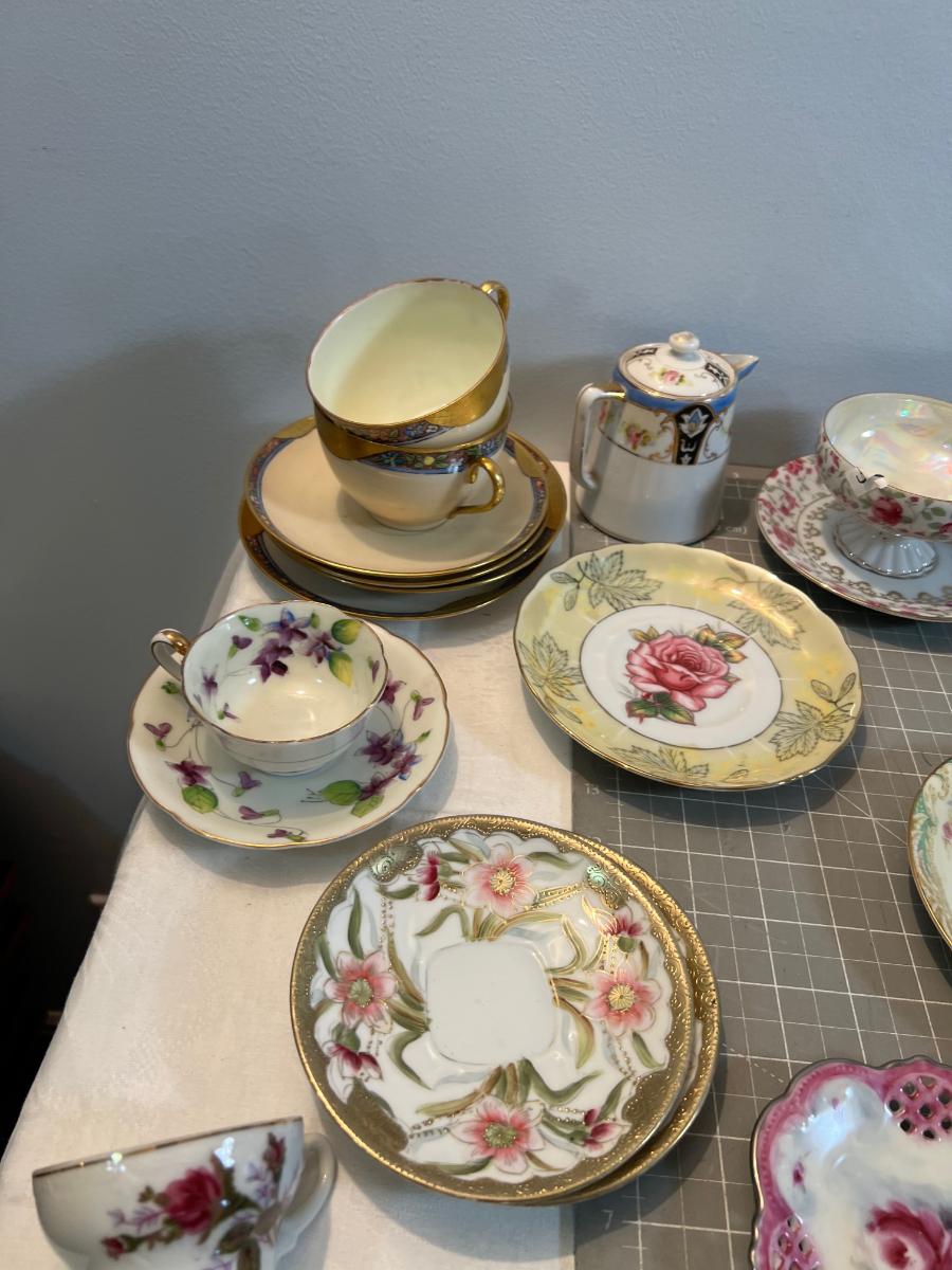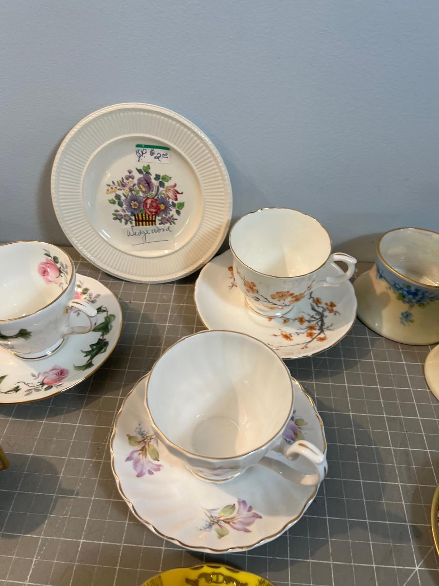 If the Tea Cup is sitting on a Saucer, then they match. Some Singles. Please bring papers, boxes or bags.