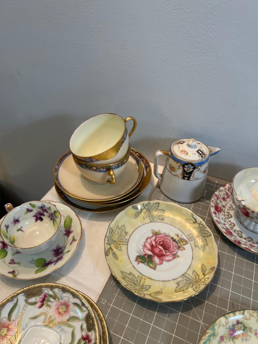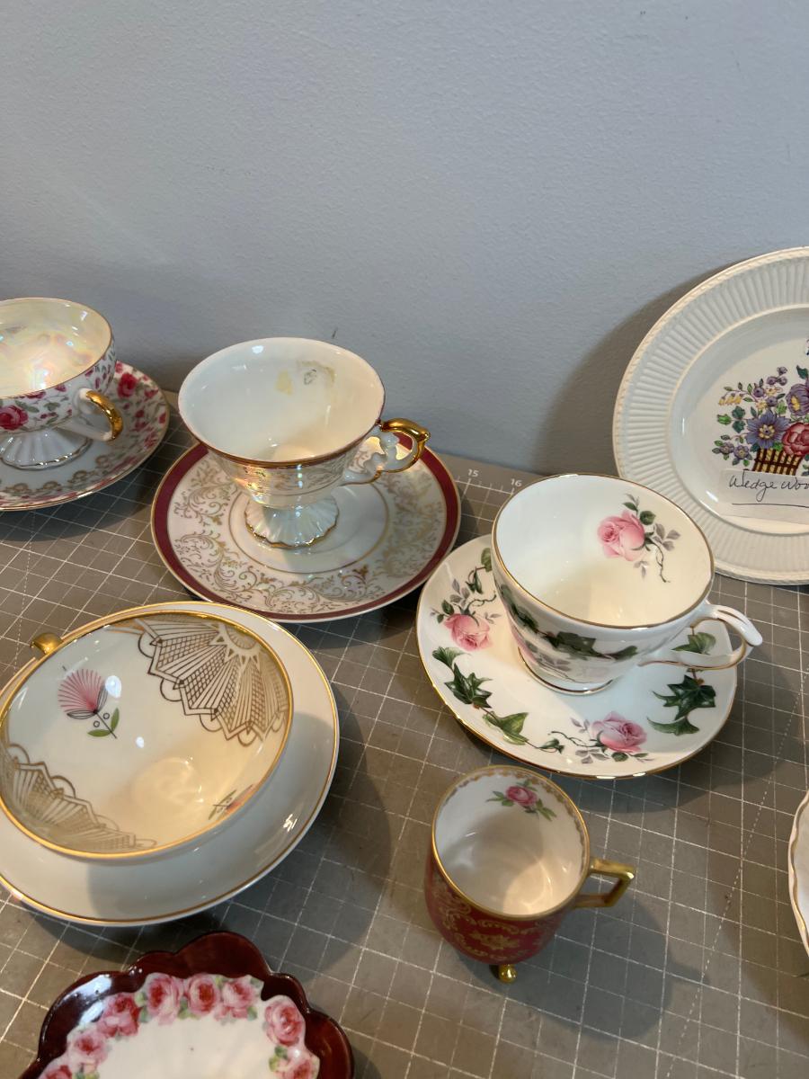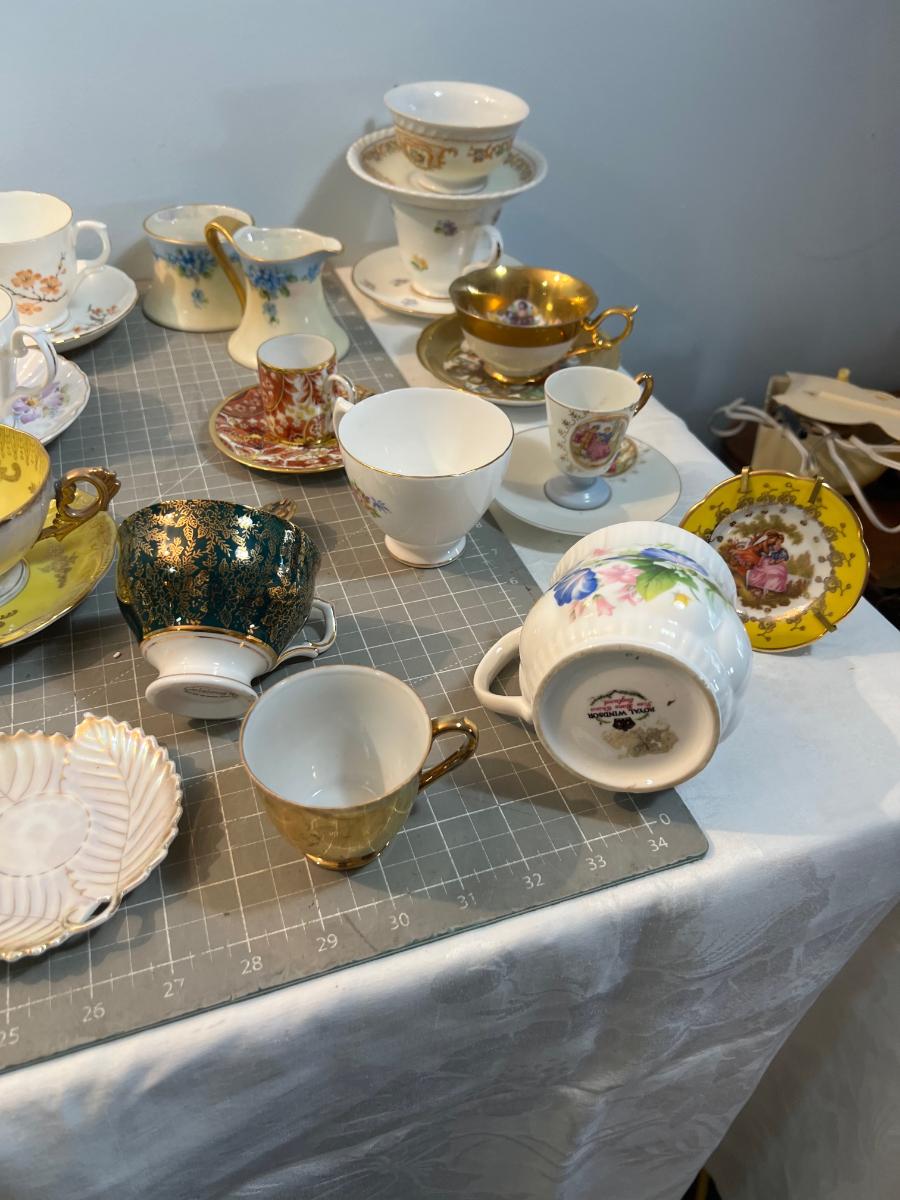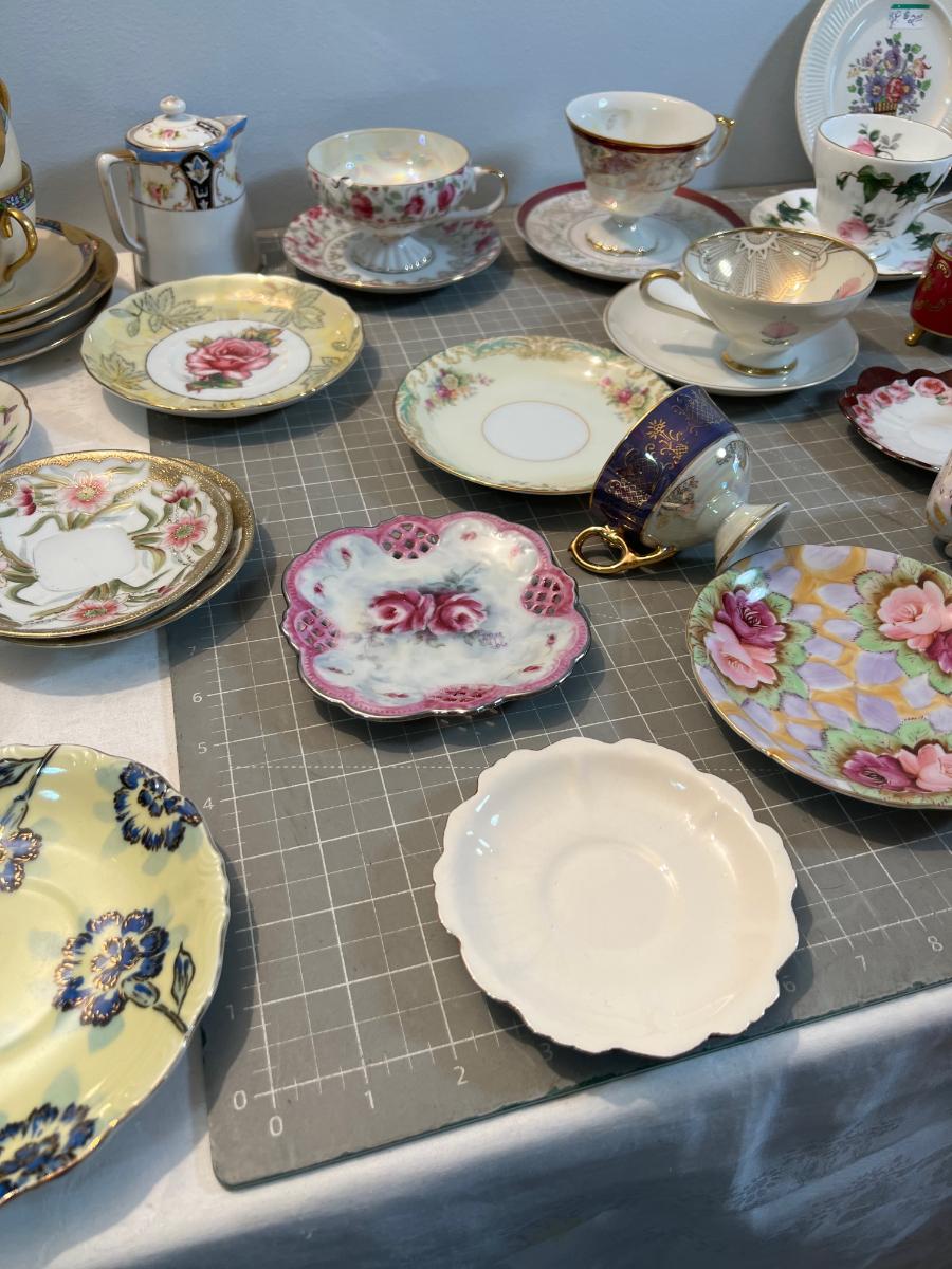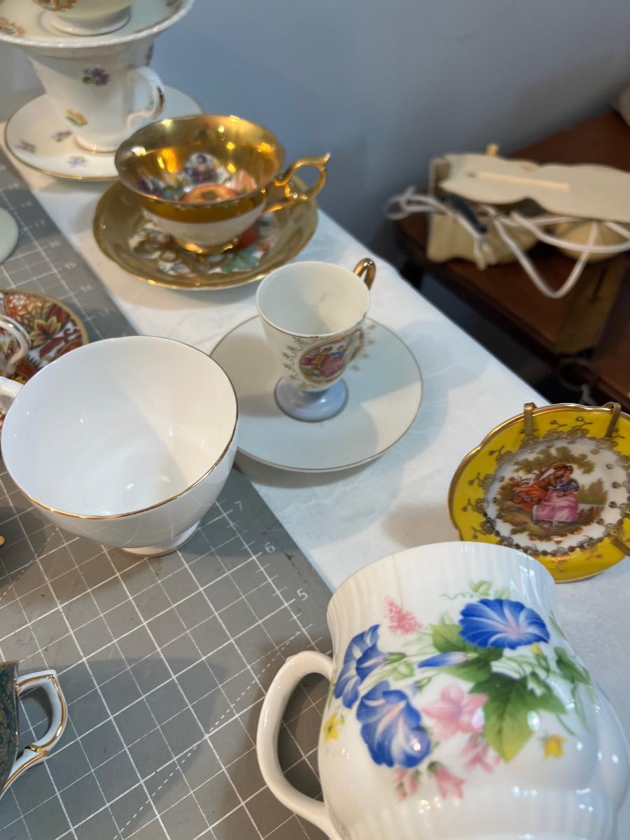 If the Tea Cup is sitting on a Saucer, then they match. Some Singles. Please bring papers, boxes or bags.