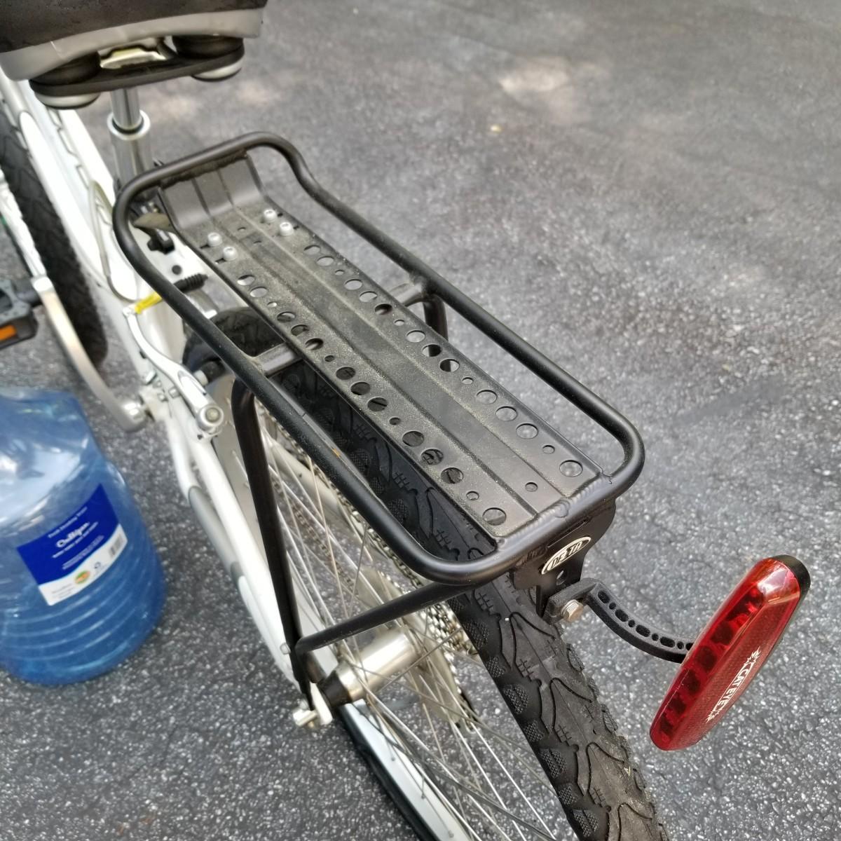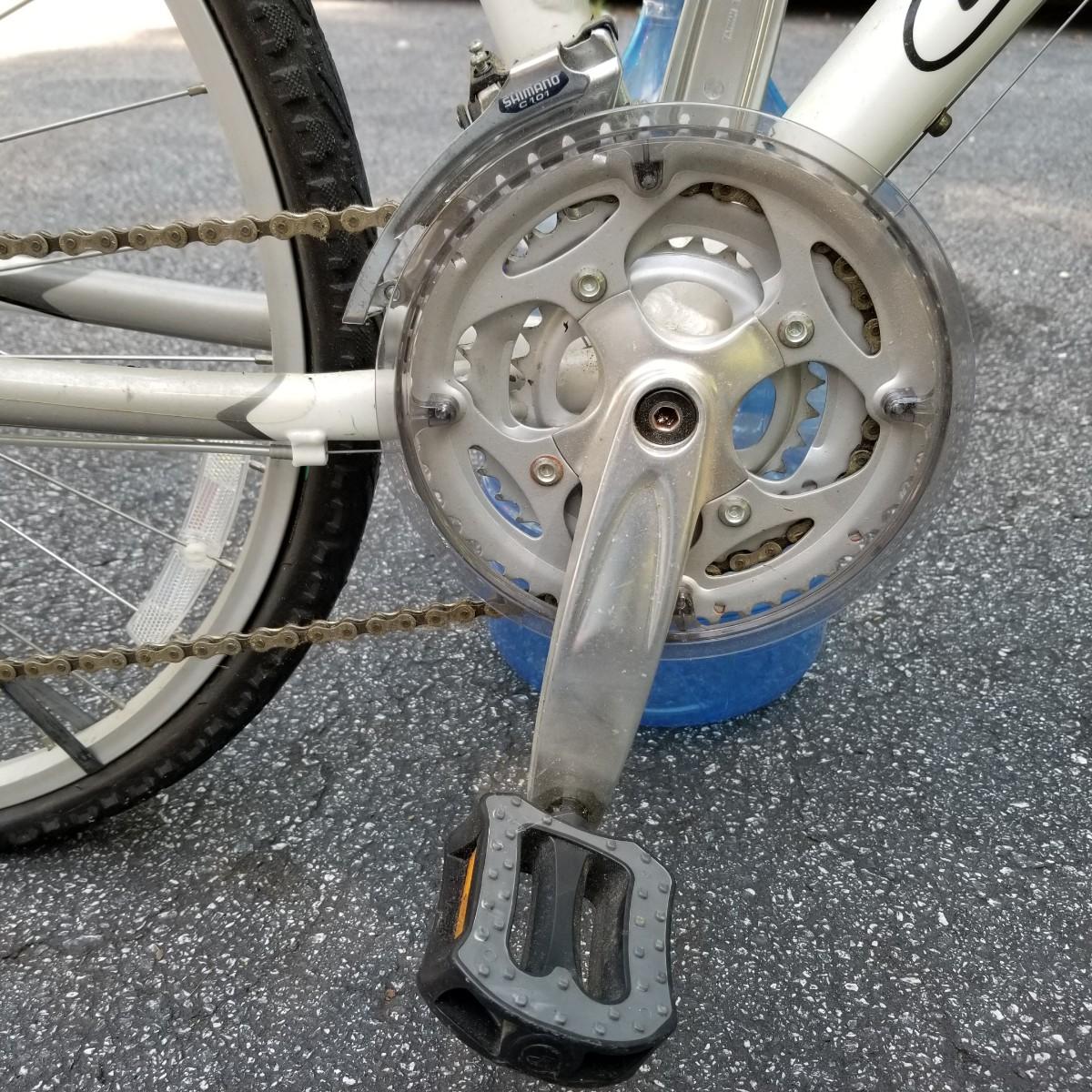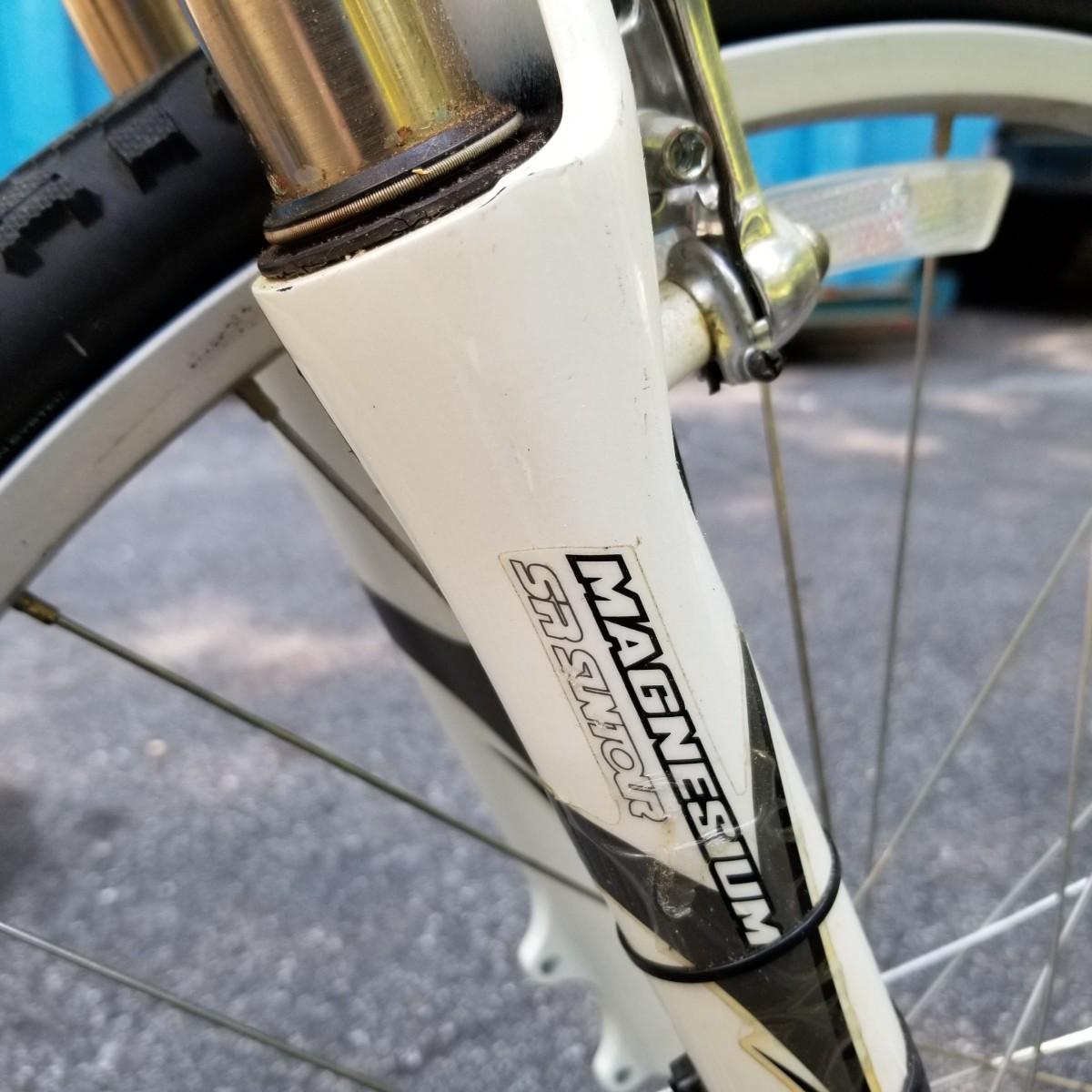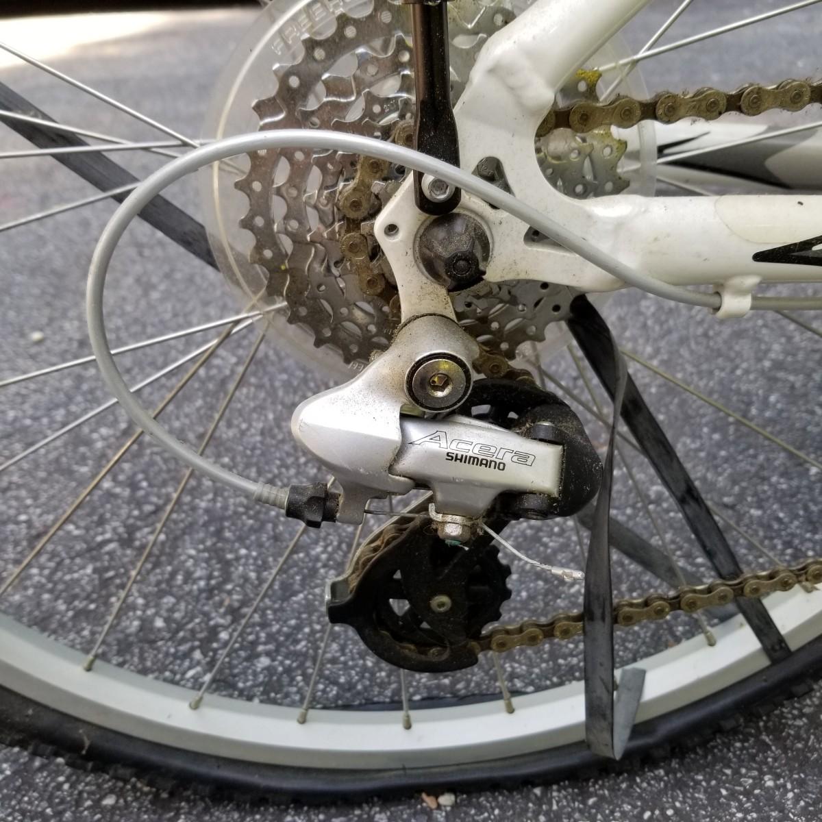 Giant Sedona DX 26" ladies bike. White aluminum frame with cushion shock front forks. Twenty-four speed Shimano Acera gear set, SRam handle shifters, Tektro brakes. Rear luggage rack, water bottle holder, Cateye speedometer that appears to need batteries as it would not power on and light. See photos for details. Local pickup only.