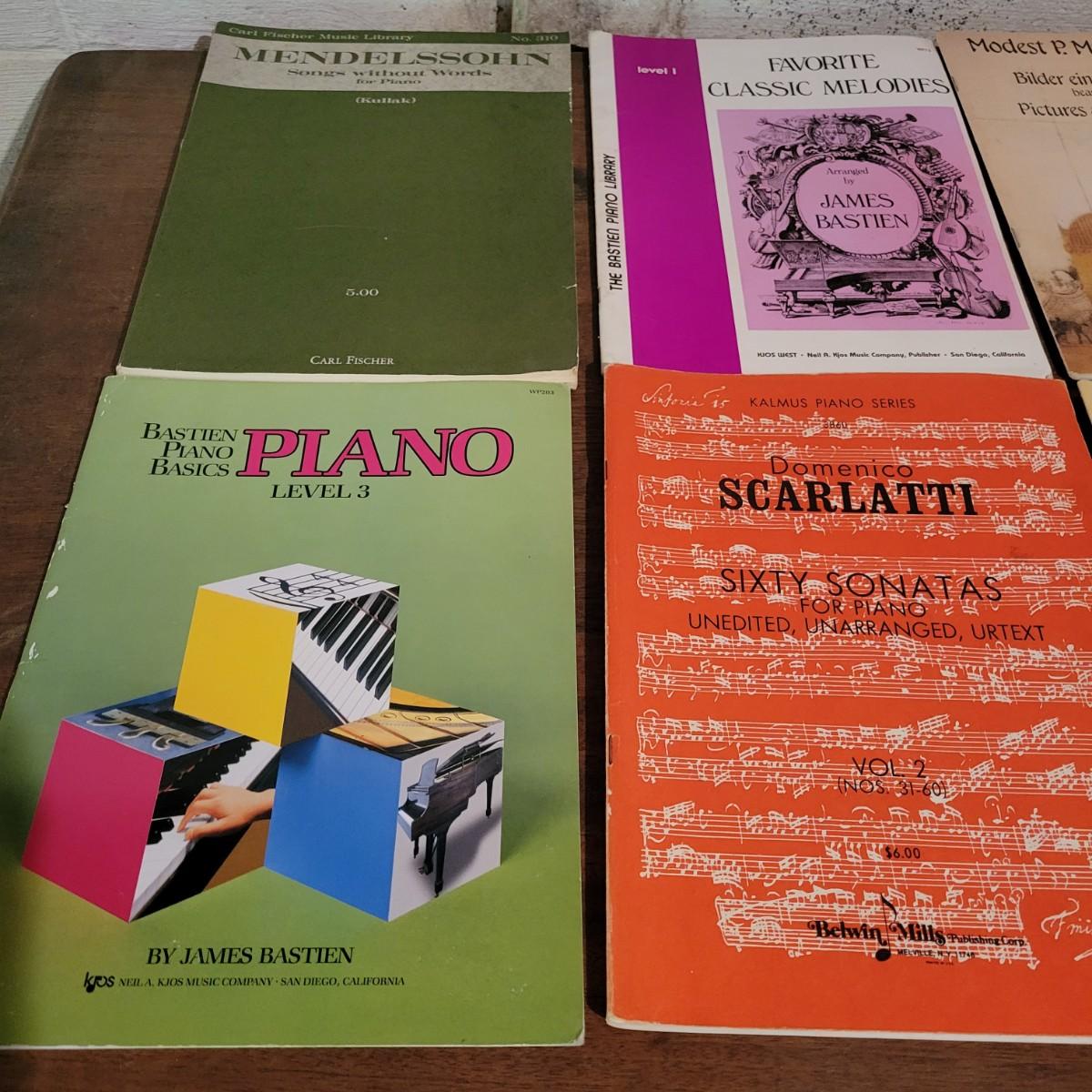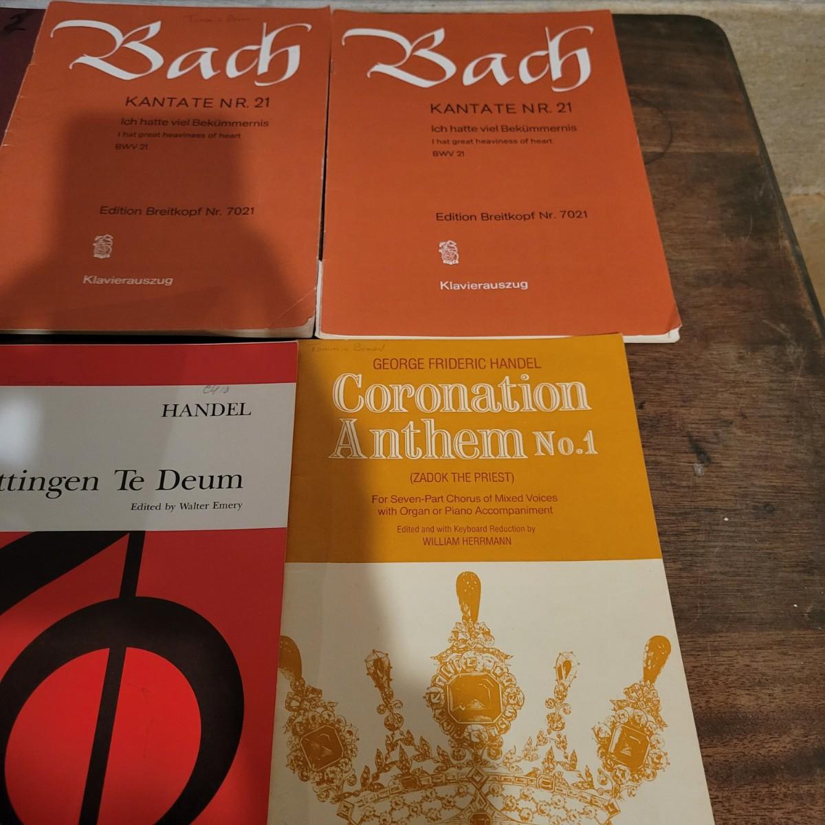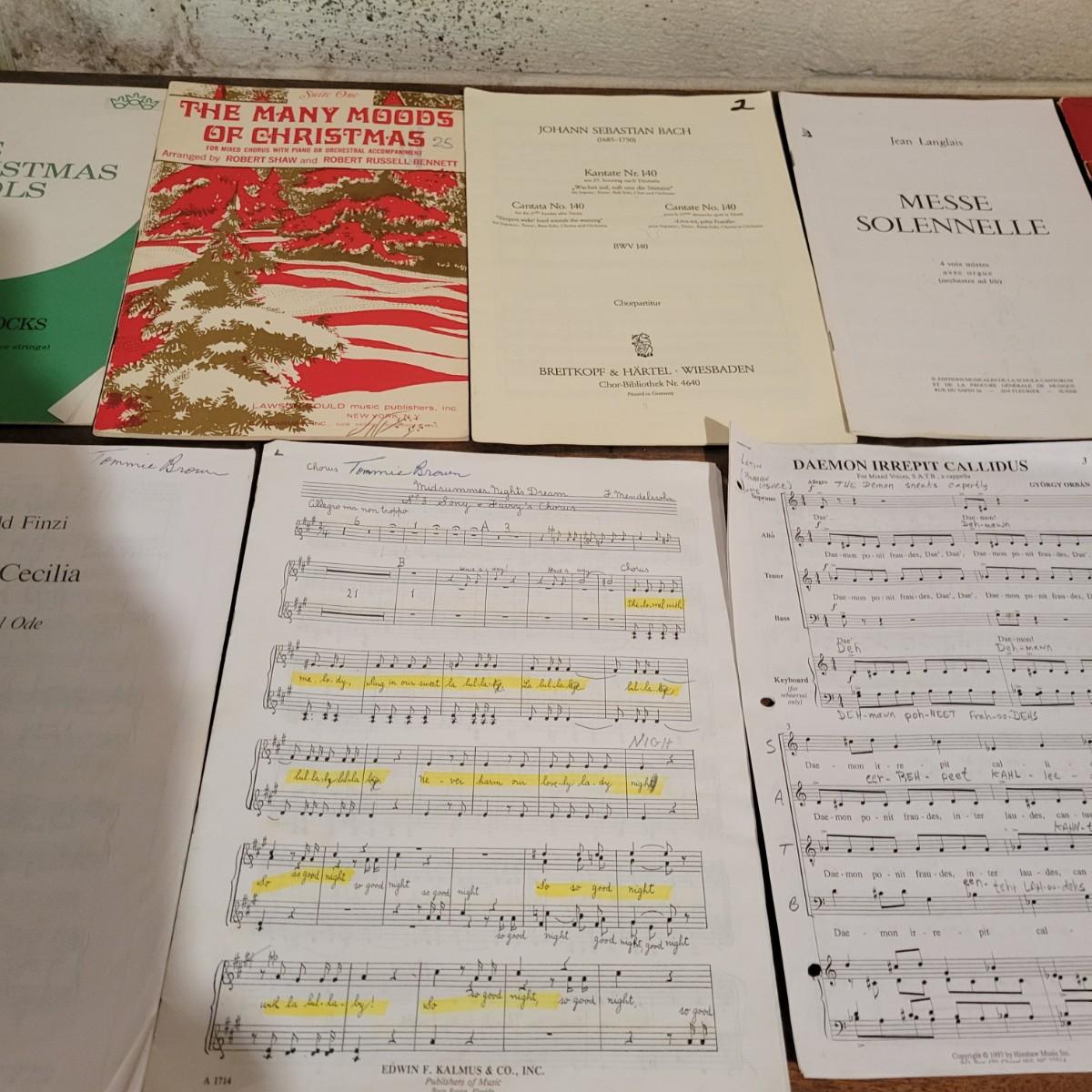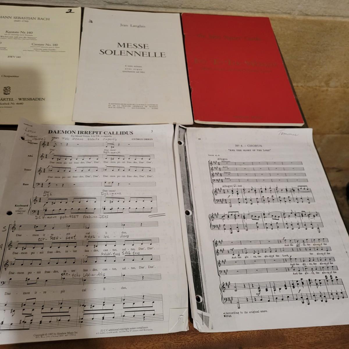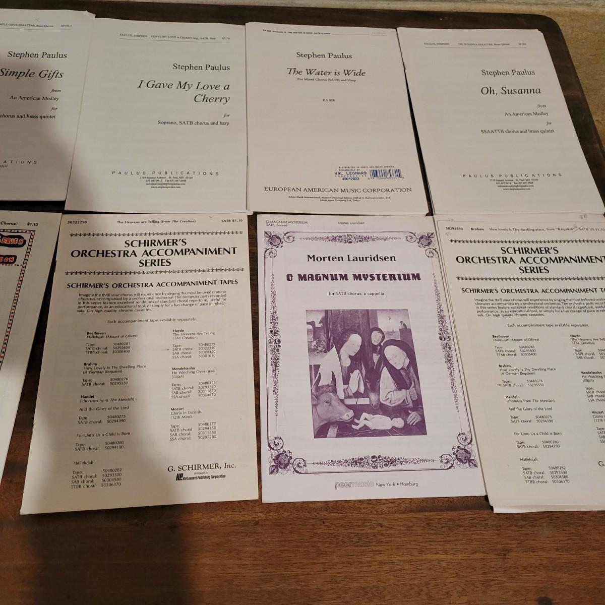 A giant selection of piano and choral sheet music in good condition. There are a multitude of pieces that have notes and are highlighted. Too many scores to show everything in this collection that ranges from classical masters to Christmas pieces. A variety of formats from bound books to loose sheet music and also includes three hardback books. Local pickup only