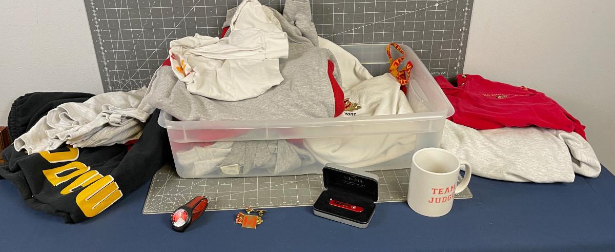 GIANT Tub of JUDGE MEMORIAL Sweats, Shirts Cups