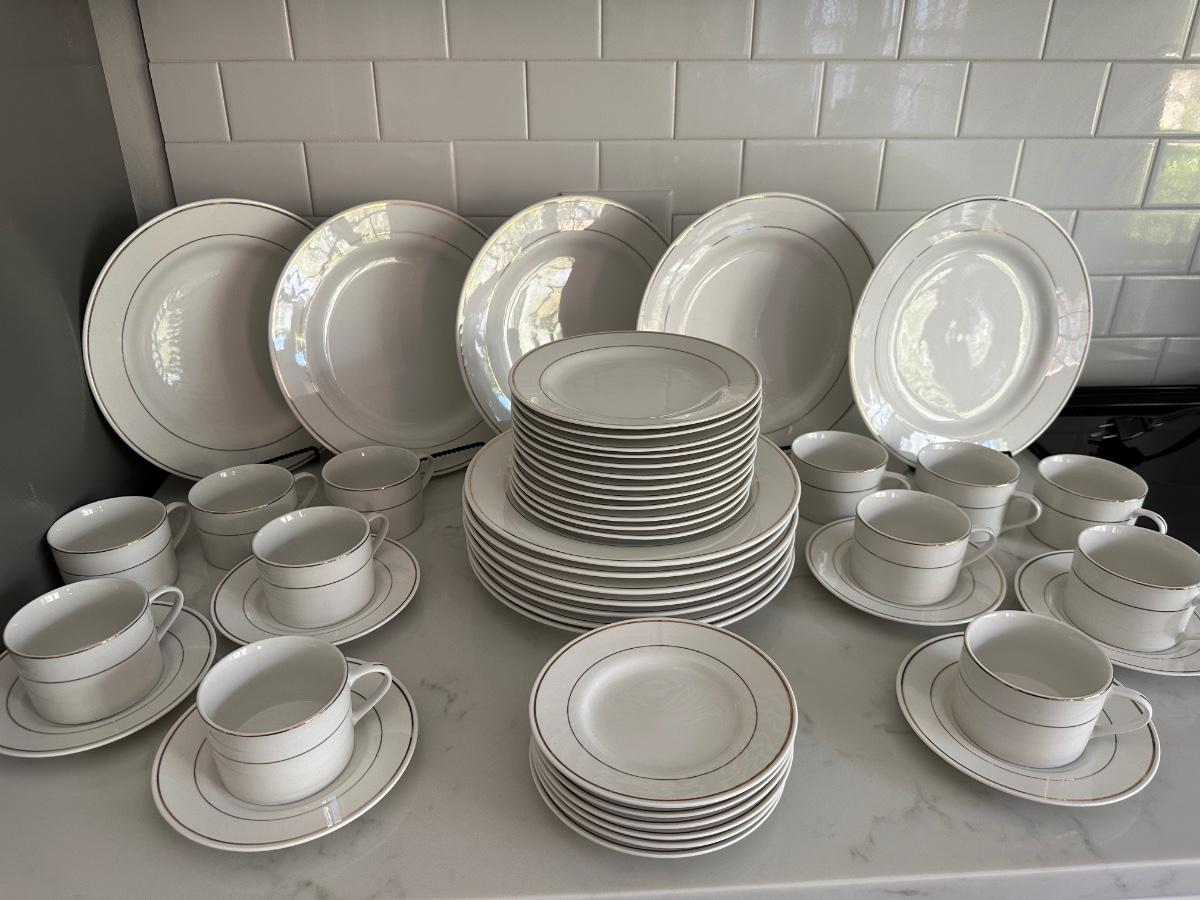 GIBSON CHINA SET, SIMPLE, ELEGANT GOLD BANDED