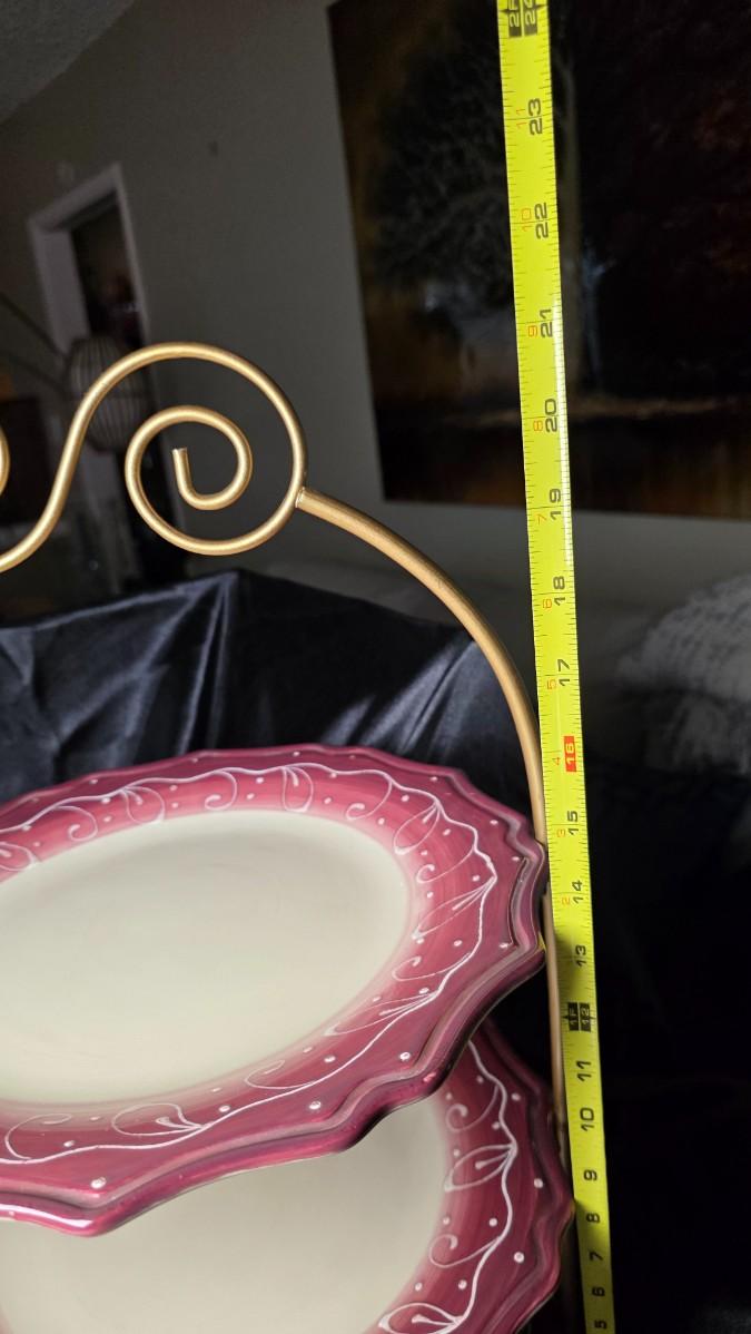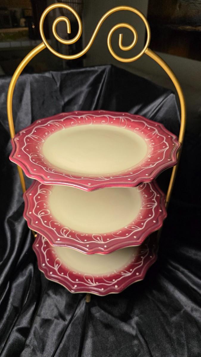 Gibson Everyday Gardino Rosso 3 Tier Serving Stand Red Hand Painted Dessert Tray