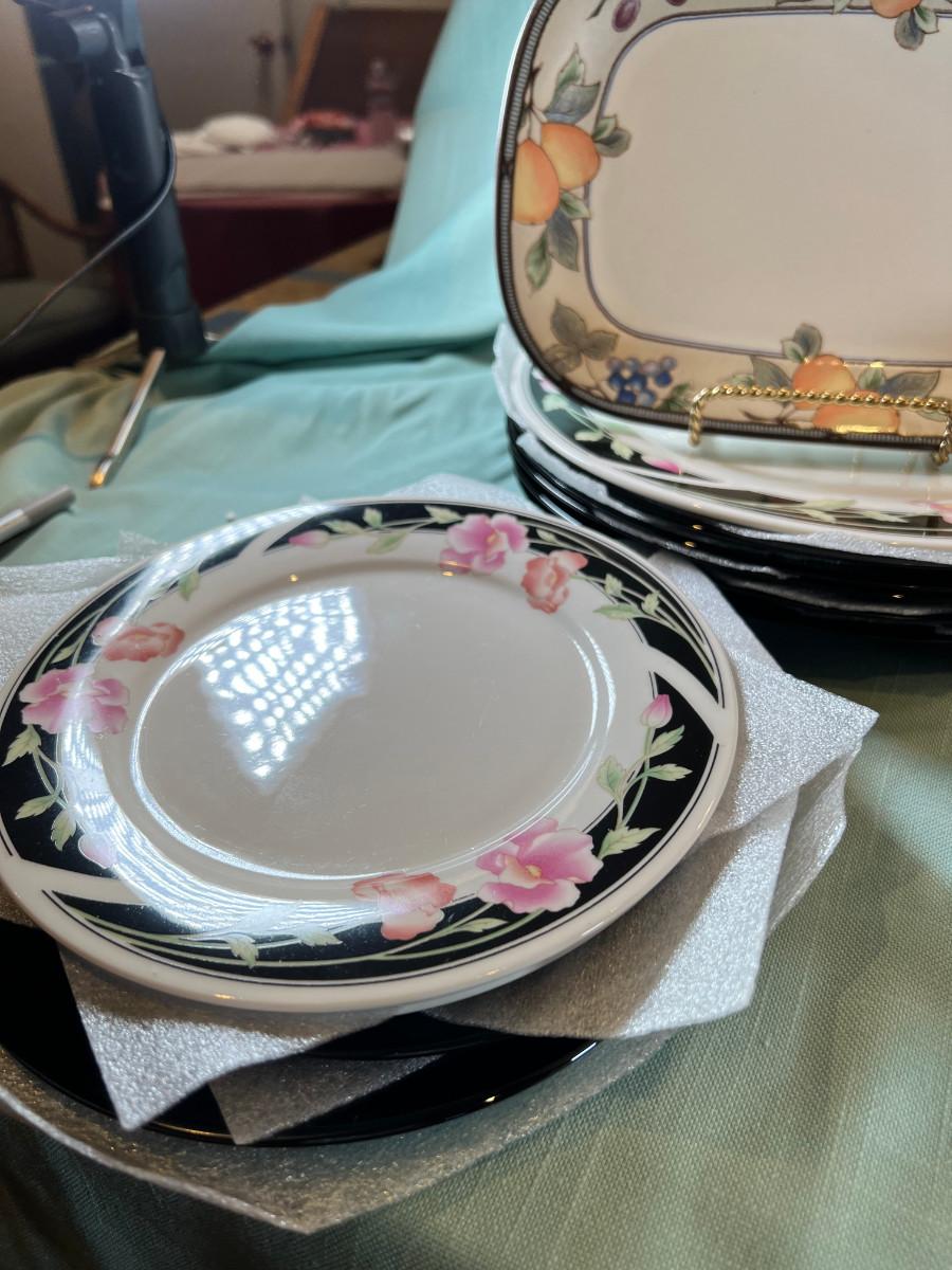 Gibson Floral dinner plates, regency bone china triple desert plate