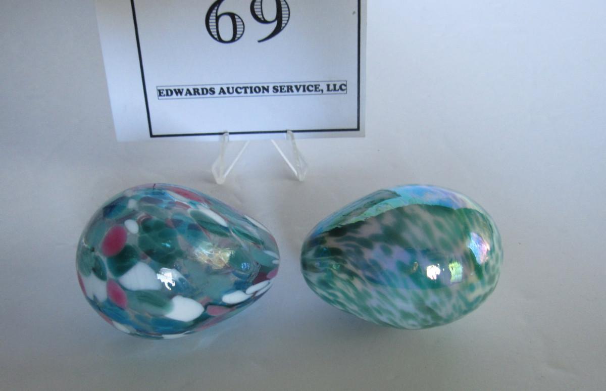 Gibson Glass Co Handmade 2 Glass Eggs and Glass Candy Cane