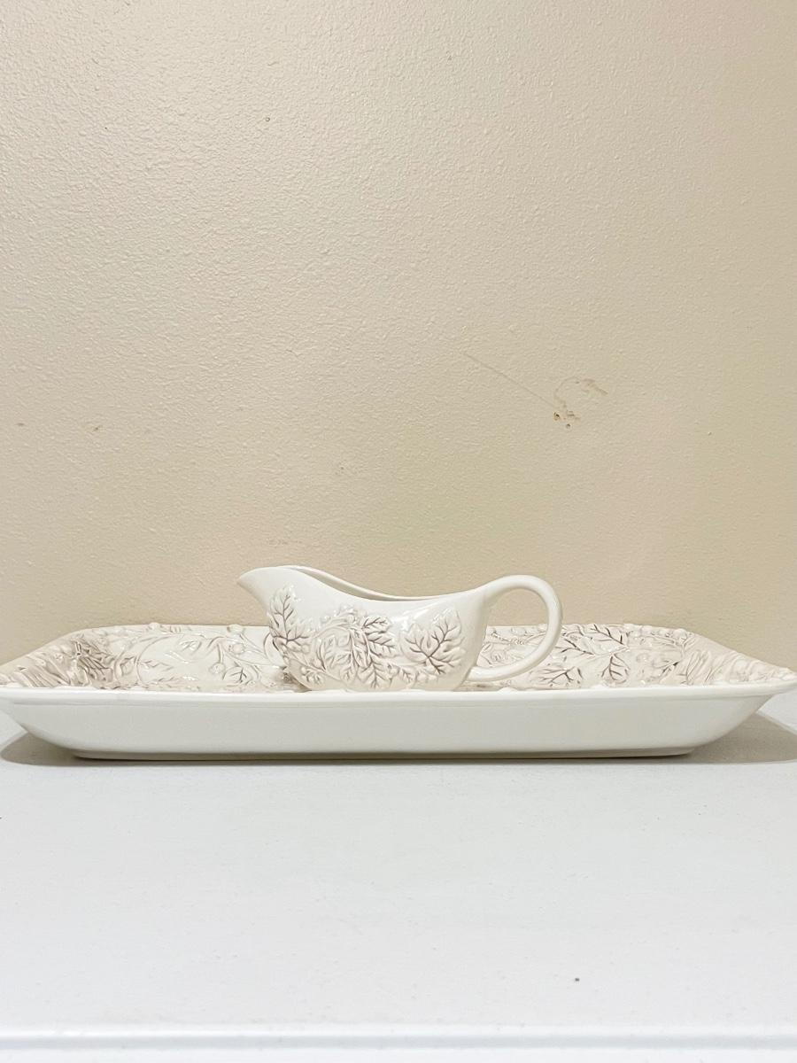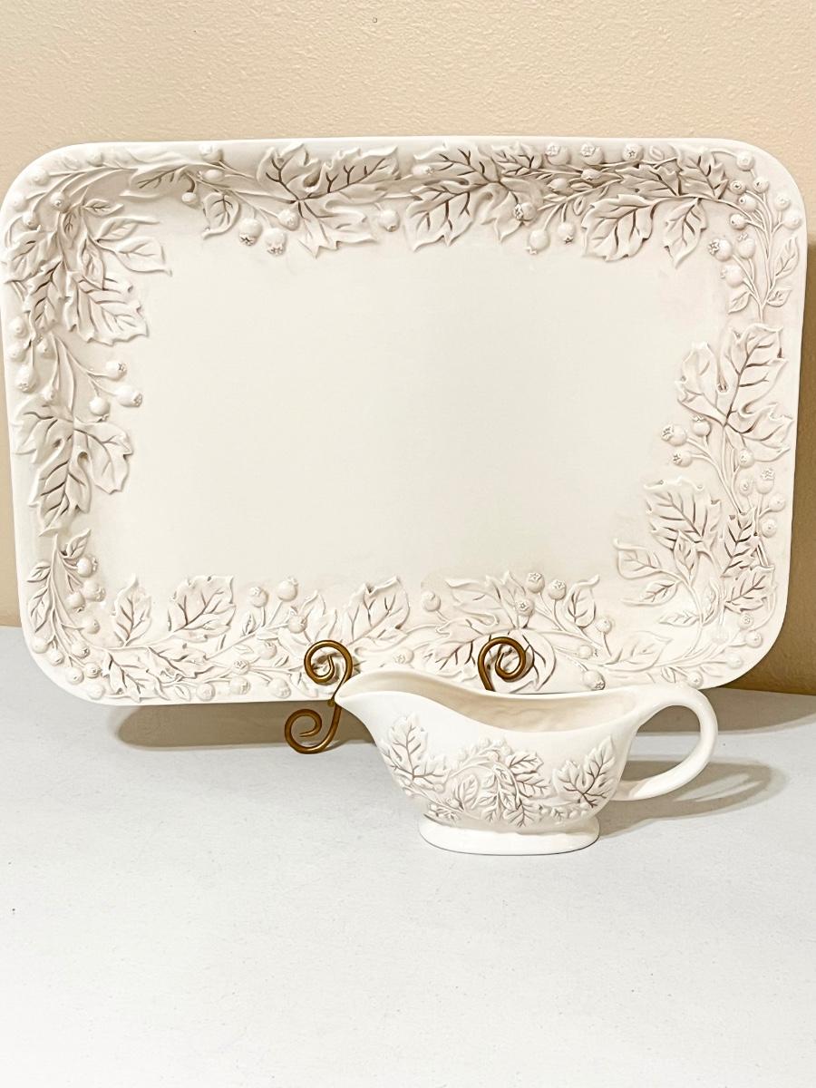 Includes = Platter 2” H x 21” W x 13” D ~ Gravy boat 4” H x 4” W x 10” D