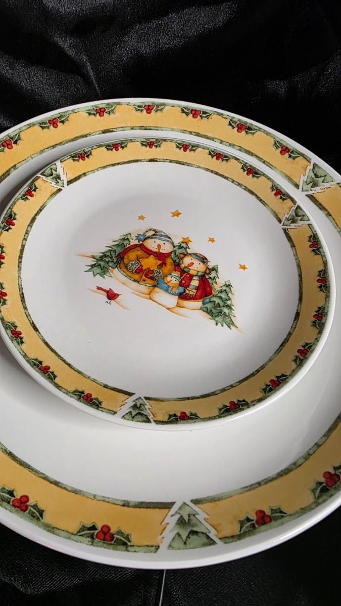 Imagine unpacking this treasure on a December morning, setting a breakfast nook aglow with smiling snowmen while cocoa steams in mugs that feel like childhood returned, or watching guests grin as they discover their favorite frolicking figure at each place setting. From Gibson's beloved holiday collection, the colors remain vivid and the stoneware sturdy, a perfect blend of nostalgic whimsy and everyday durability that turns ordinary meals into celebrations of the season's sweetest magic.