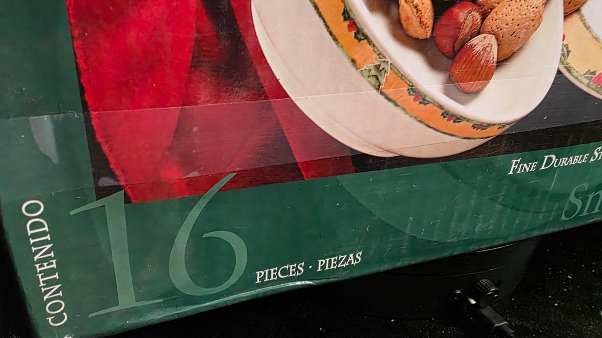 Gibson Snowman Frolic 16-Piece Stoneware Dinnerware Set - Boxed 4 Place Settings with Original Packaging
