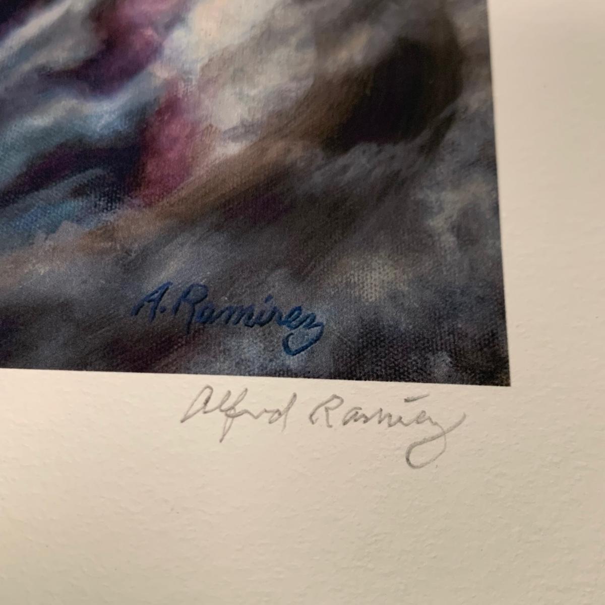 Four giclee prints of Al Ramírez original oil paintings. All prints are pencil signed by the artist. Three prints are 16” x 20” and one is 13.25” x 17”. According to the artist, these are all from a book he is working on that is not published yet.