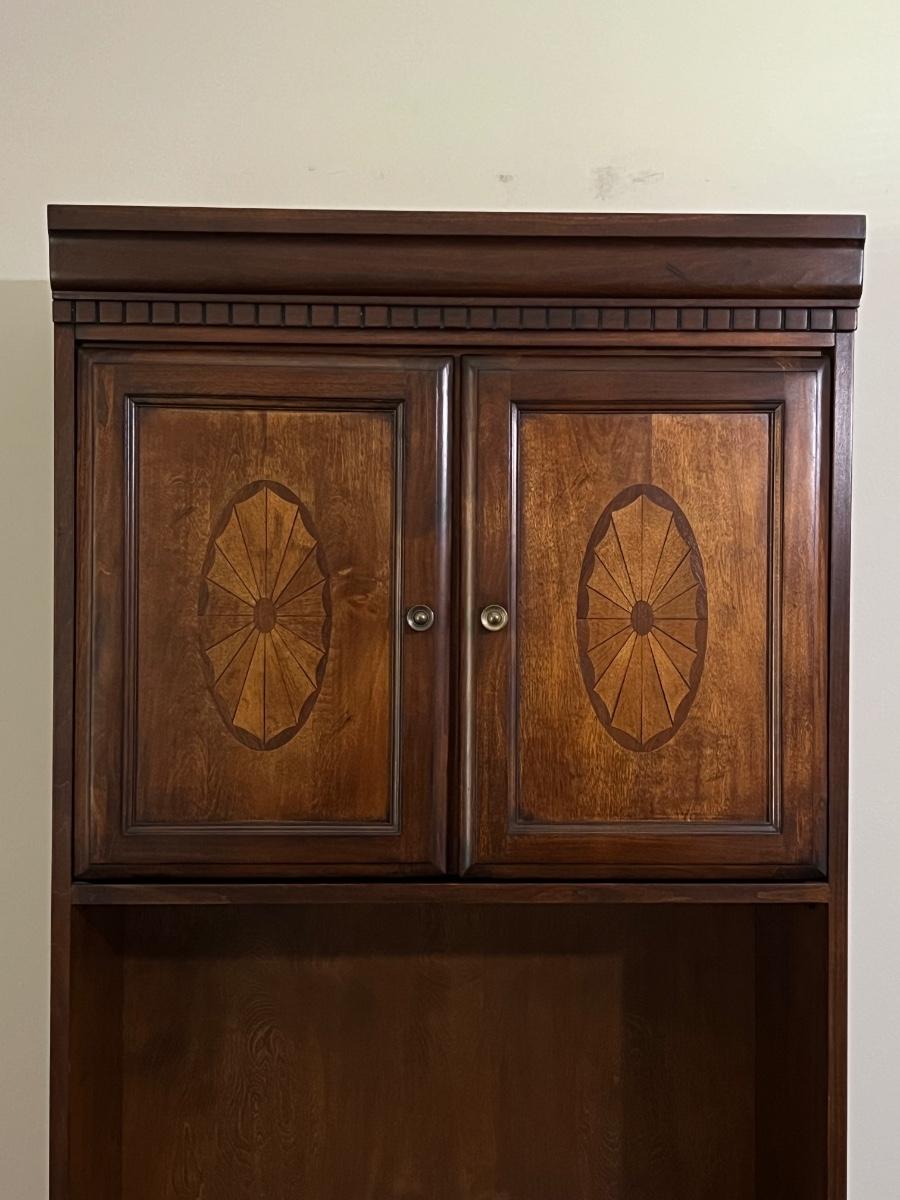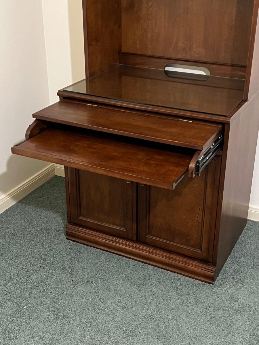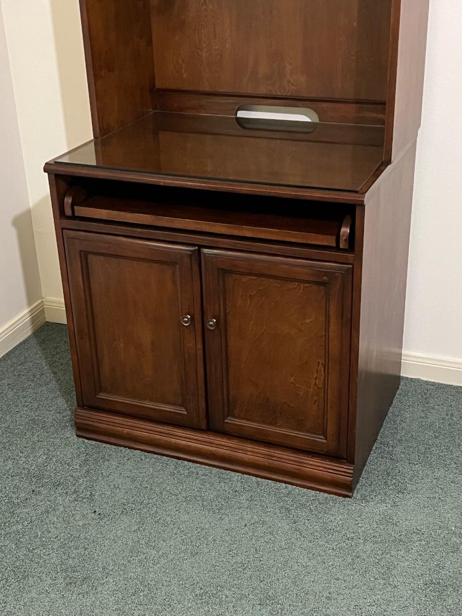 Inlaid Brown Cherry Glass Top Desk With Cabinet