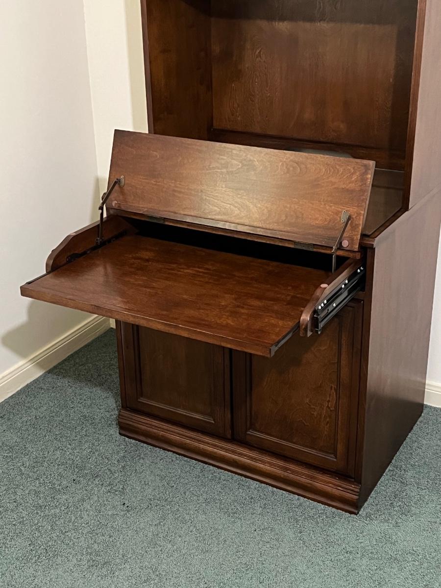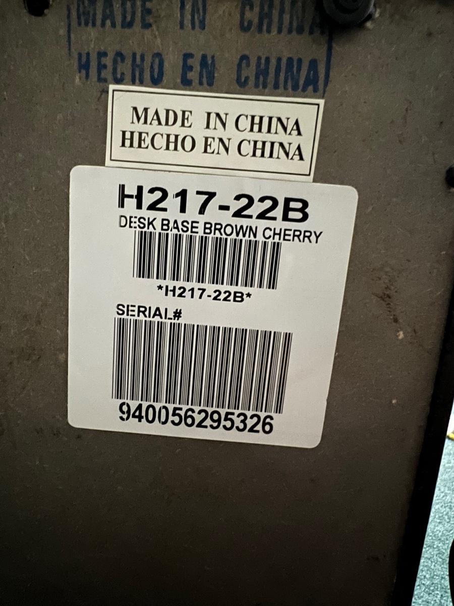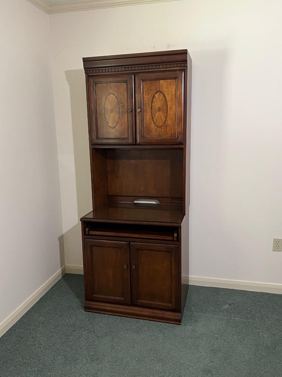Inlaid Brown Cherry Glass Top Desk With Cabinet