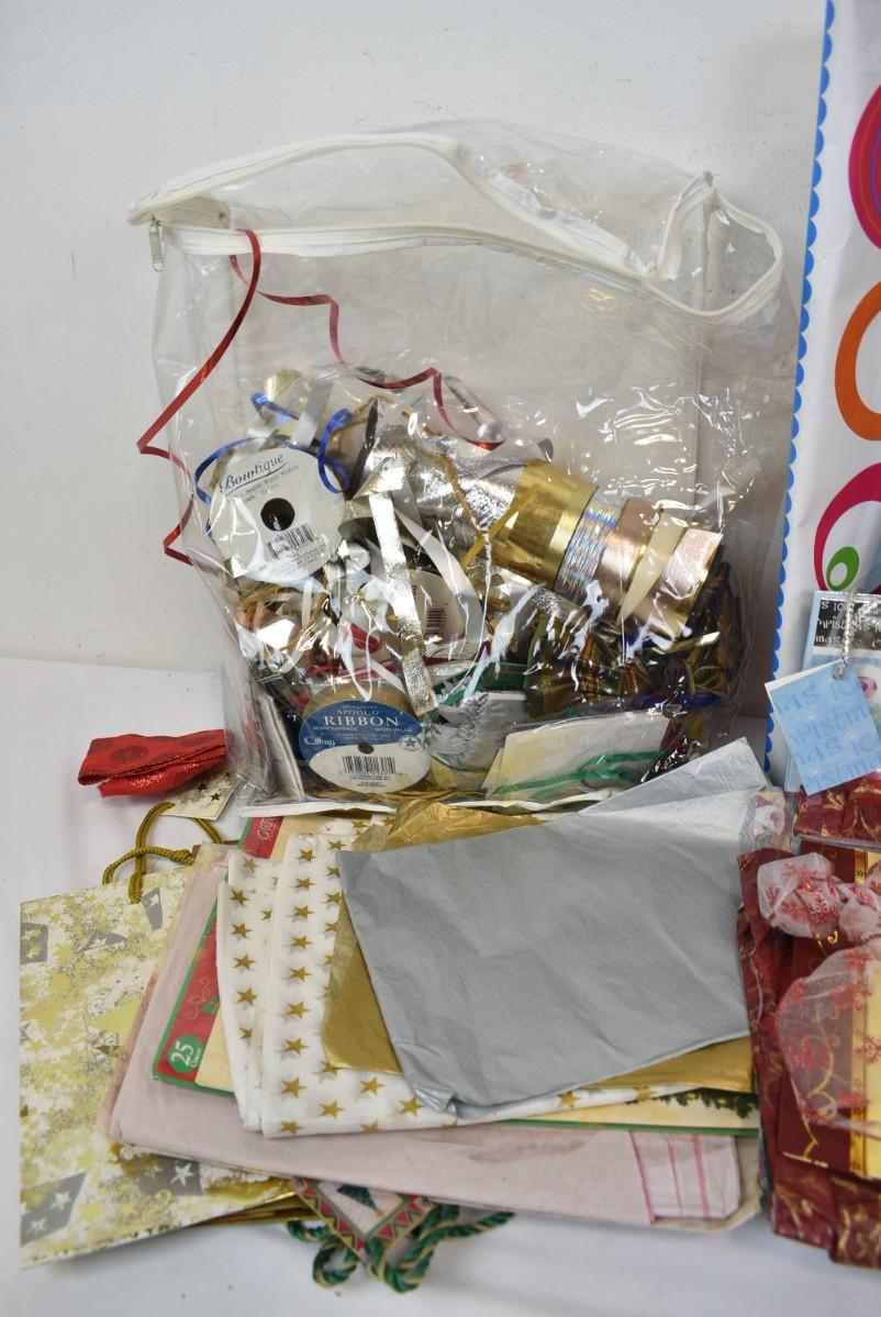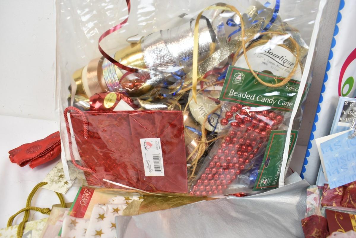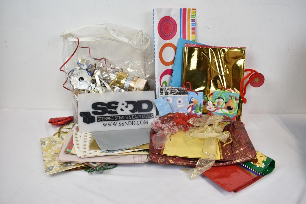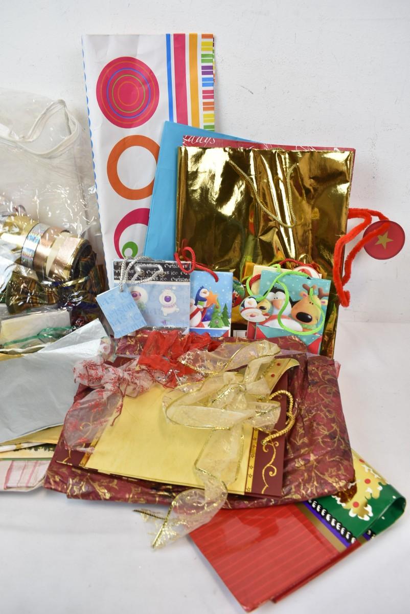 Gift Bags, Gift Paper, and Ribbon Lot - Mostly Christmas Theme