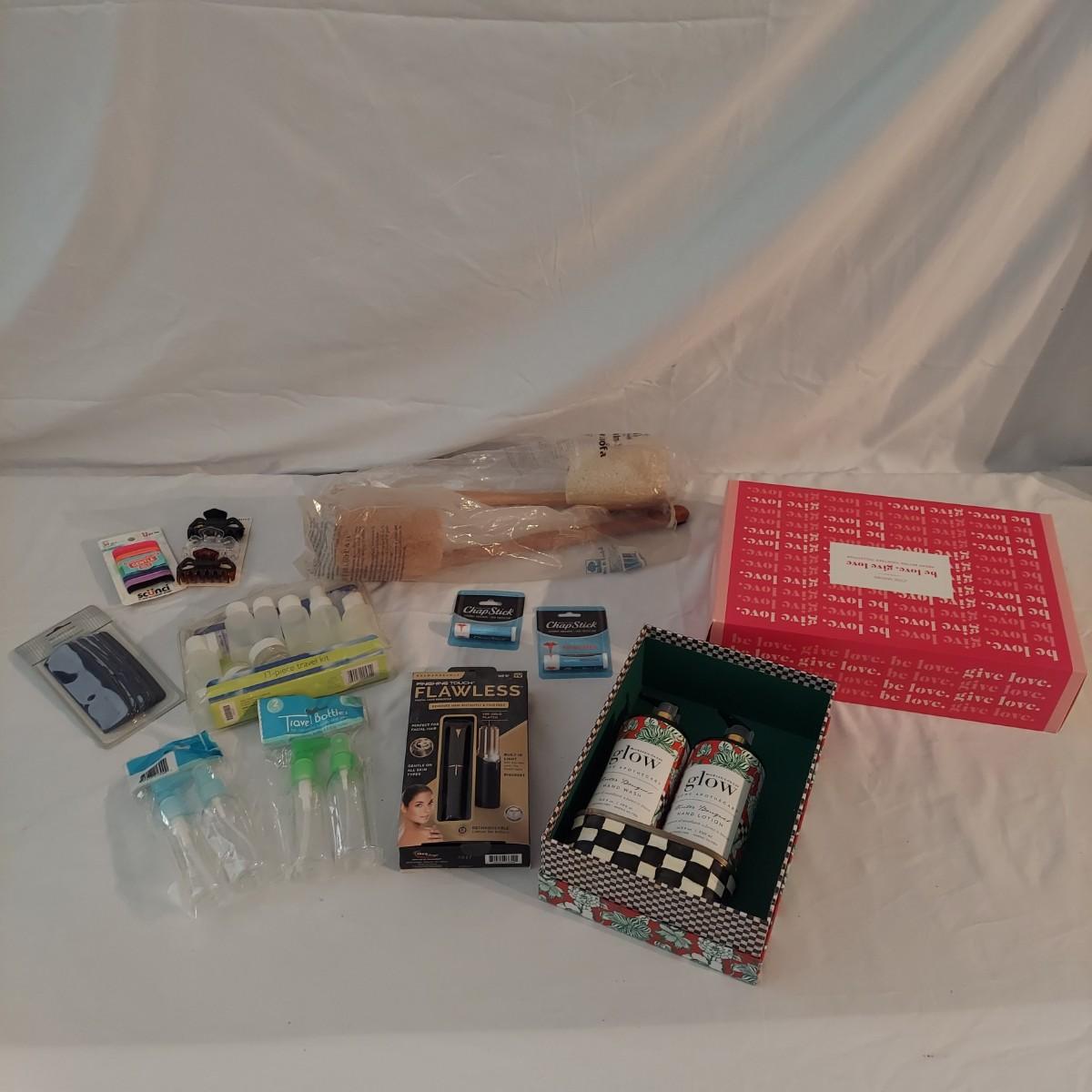 Lot includes a MacKenzie Childs gift set with soaps and soap dish. Plus a Josie Moran argan oil gift set. Also includes several other beauty products. All appear to be unused and in their original packaging. We cannot verify contents. Please see photos for details. Shipping available