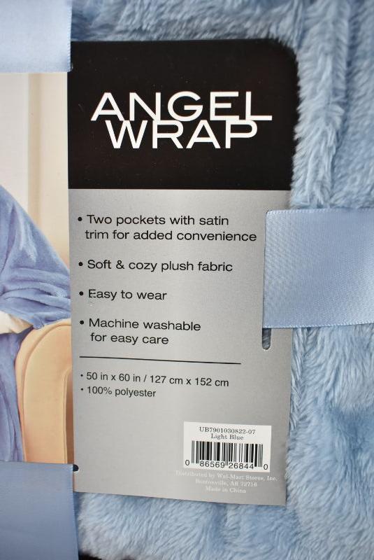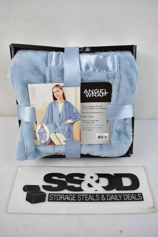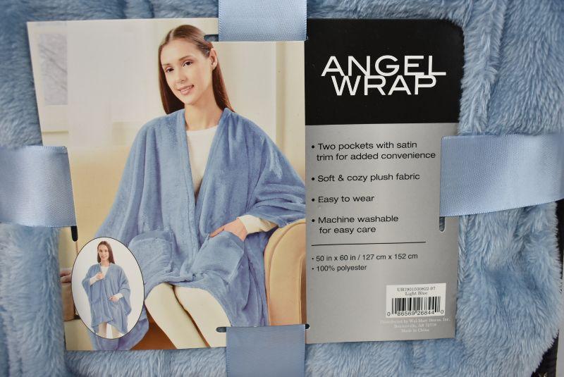 Giftable and Wearable Angel Wrap Plush Throw Blanket with Pockets, Blue - New