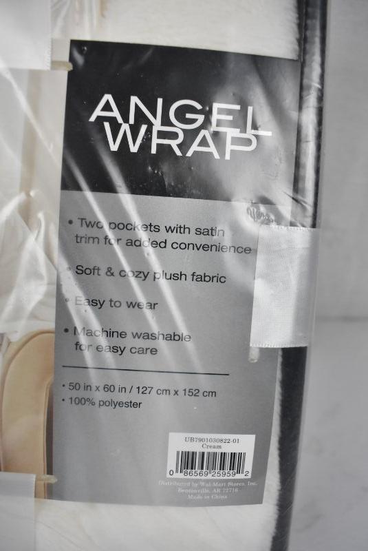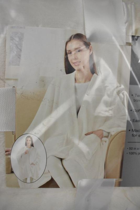 Giftable and Wearable Angel Wrap Plush Throw Blanket with Pockets, Cream - New