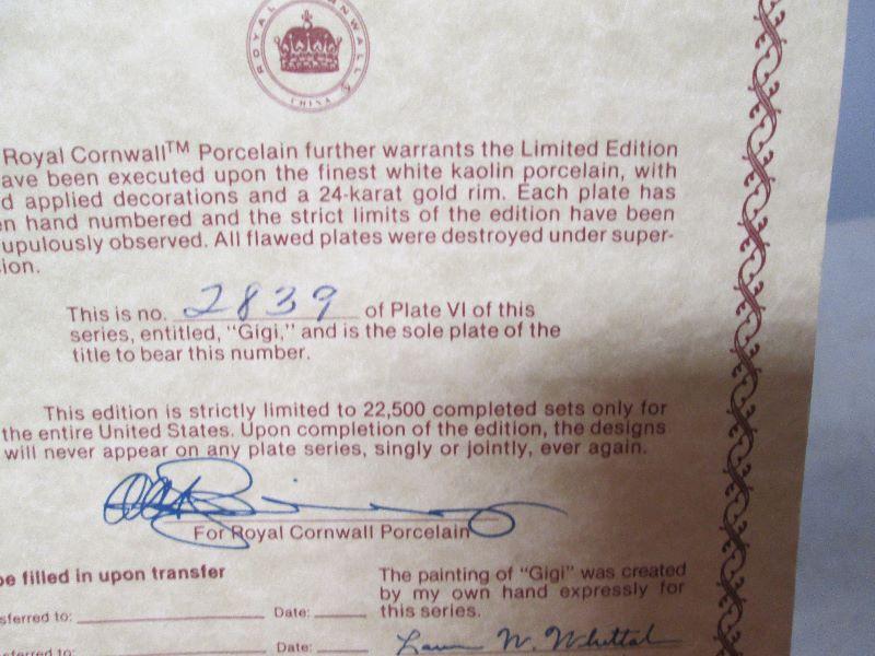 Approximately 9 and 1/4 in GIGI plate is from a collector series of six plates this is the third in the series of the golden age of Cinema the plate is number 2839 of the limited edition of 22500