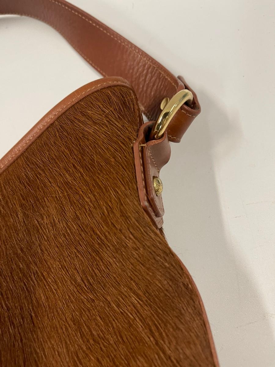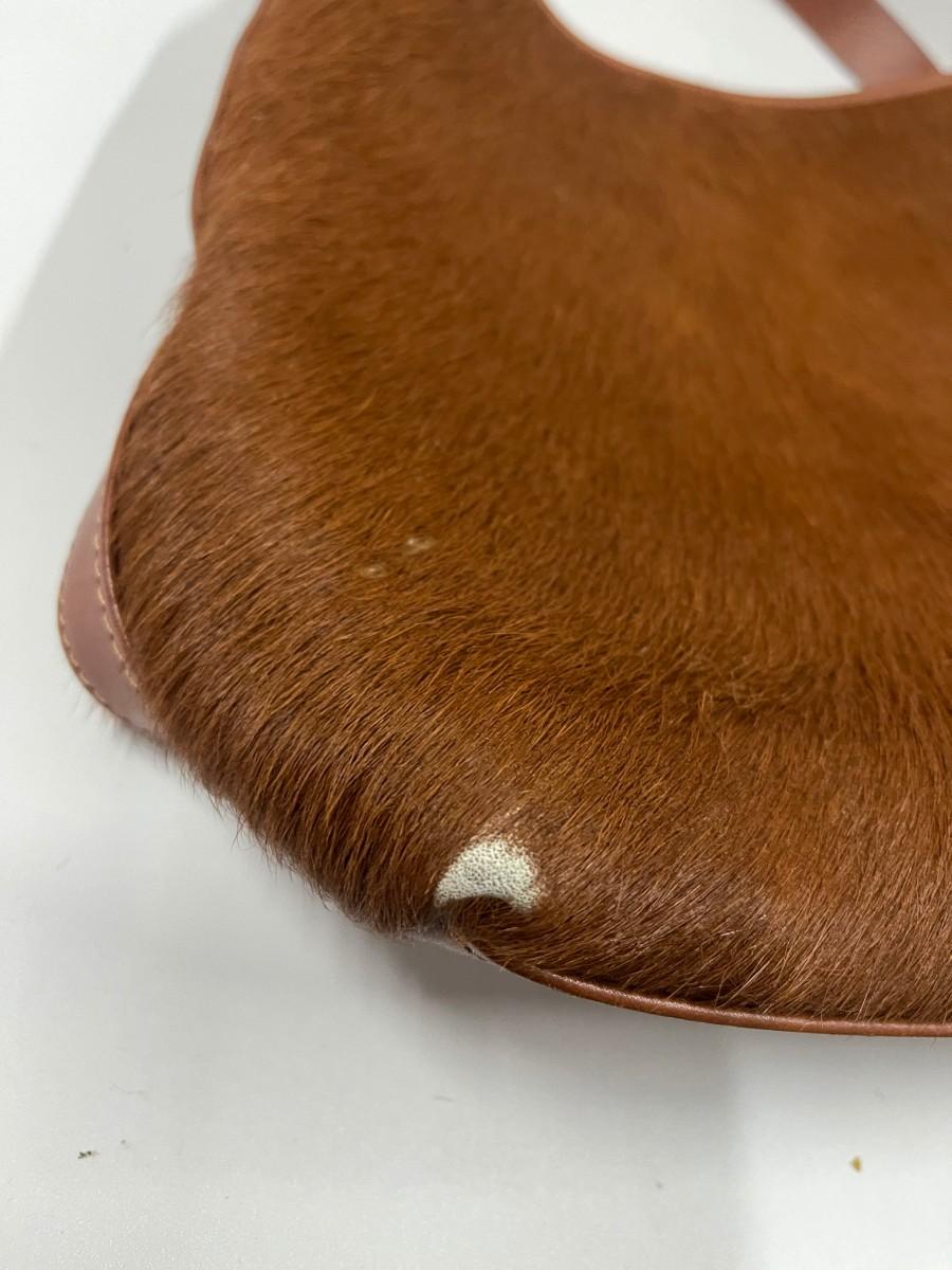 Gigi New York brown cow hide handbag. Overall good condition with obvious wear at the corners. Interior is clean. approx 13 1/2" x 12". Retail on a Gigi bag like this is approximately $400