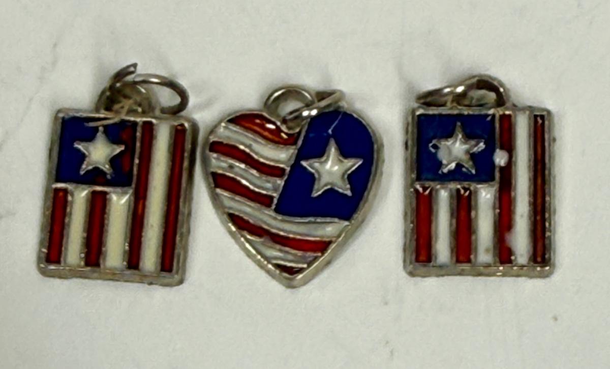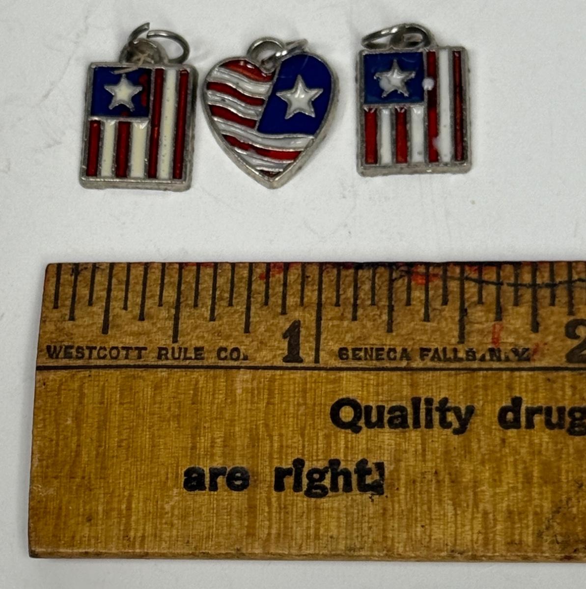 Silvertone & enamel cloisonné American Flag Charms _ lot of 3 = USA patriot collectibles