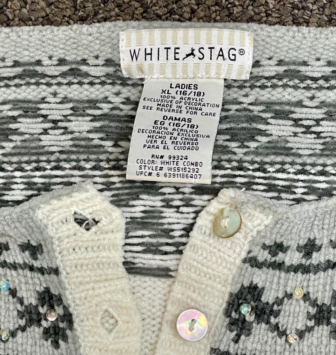 Women's size XL (16-18), in good condition. 100% acrylic.