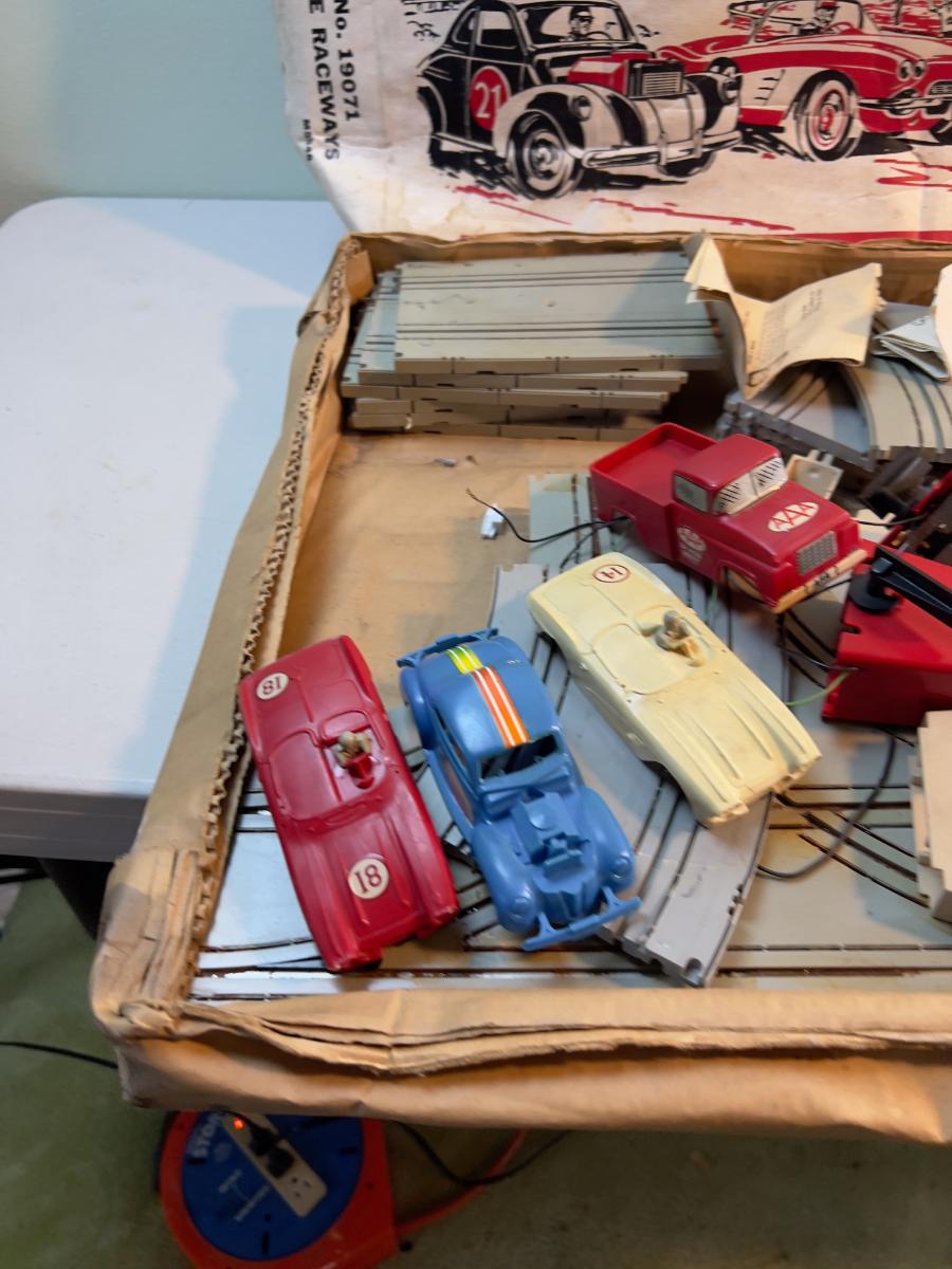 Box has gotten wet. There is rust. Not of the Cars have bodies just chassis . Not complete.