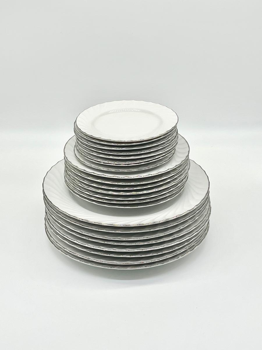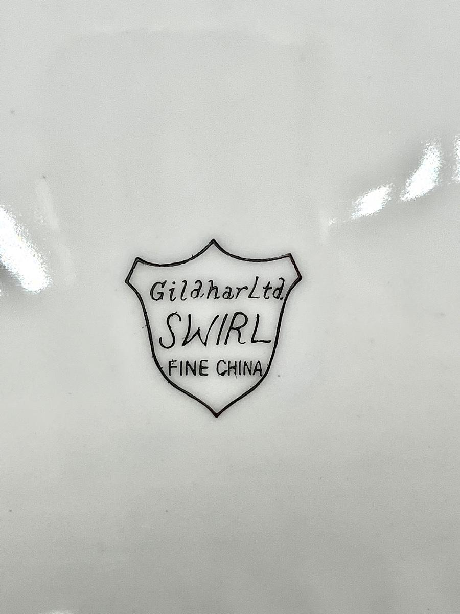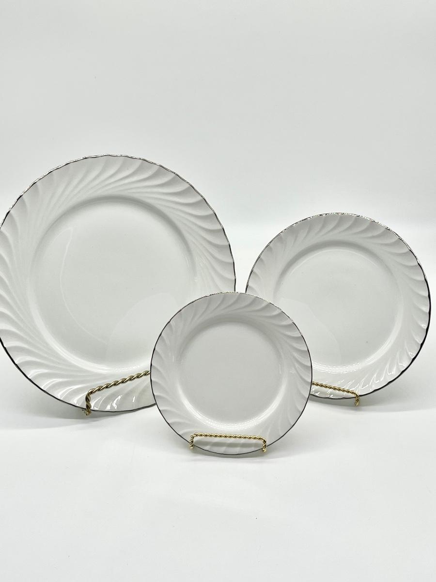 GILDHAR ~ 3-Piece Serving For 6 ~ Swirl China With Silver Trim