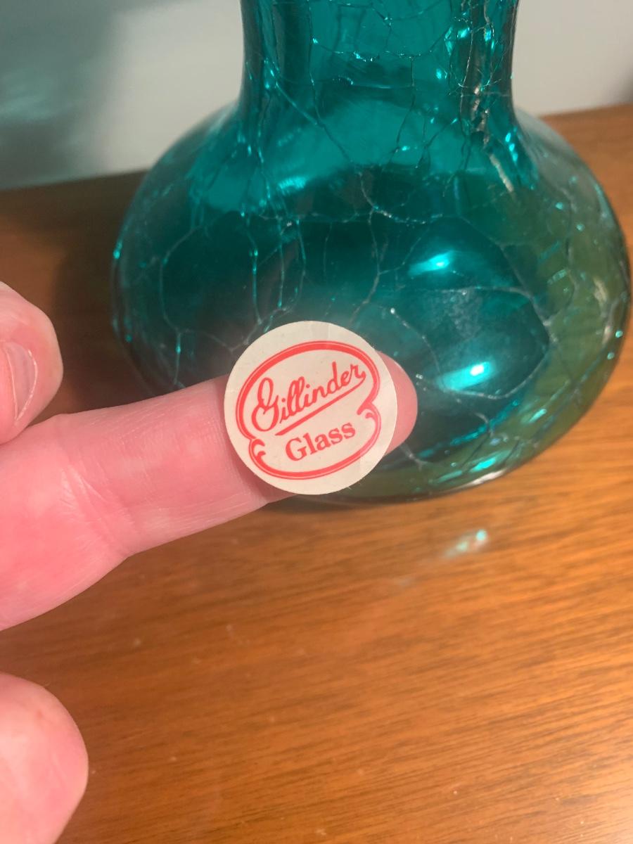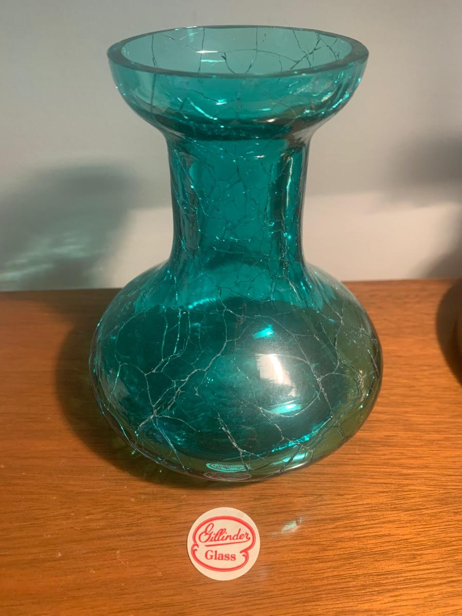 Gillinder Green Crackle Glass Vase Lot 201