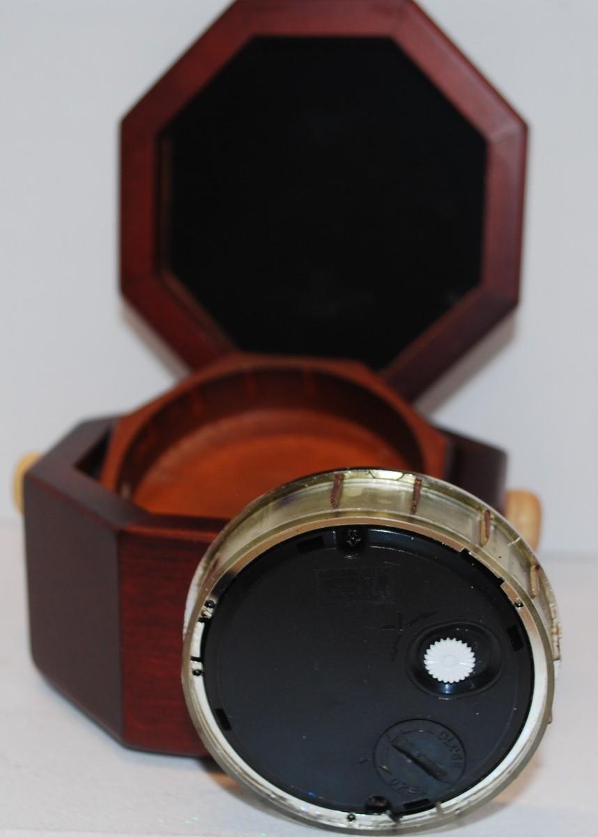 Gimbal Style Clock in an Octagon Shaped Wooden Hinged Covered Box 3" x 2" (Clock Works)