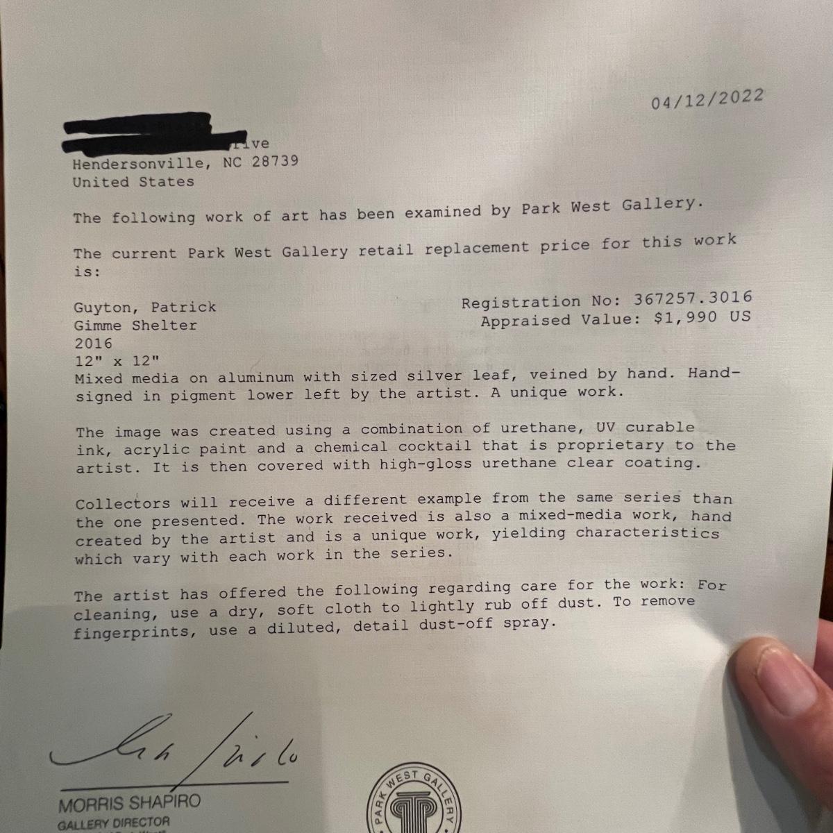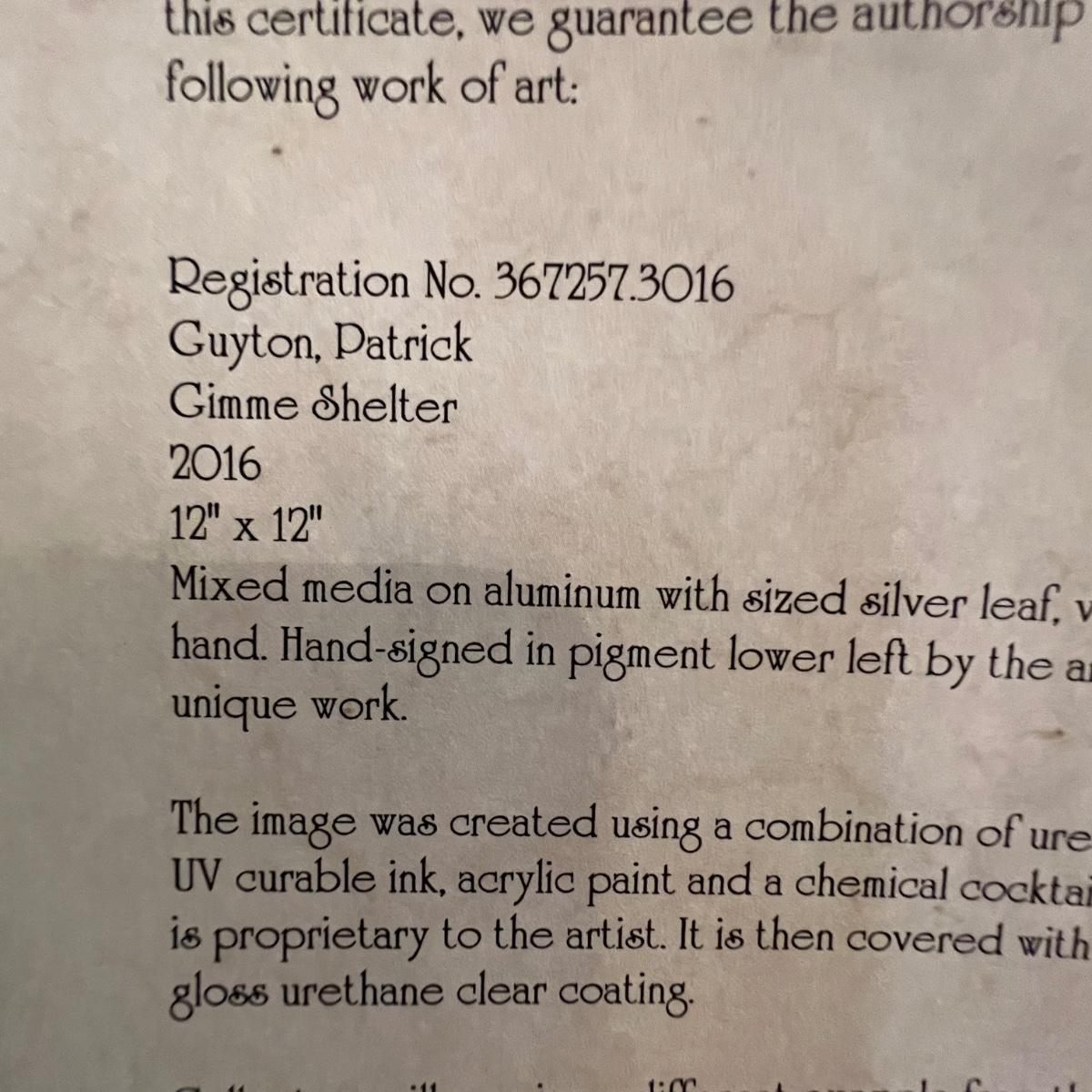 “Gimme Me Shelter” By Patrick Guyton Inc. COA & Signed (FE-RG)
