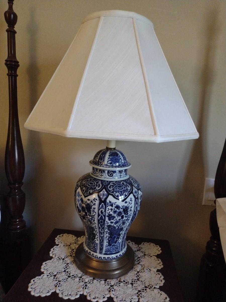 Blue and White Ceramic Ginger Jar Table Lamp