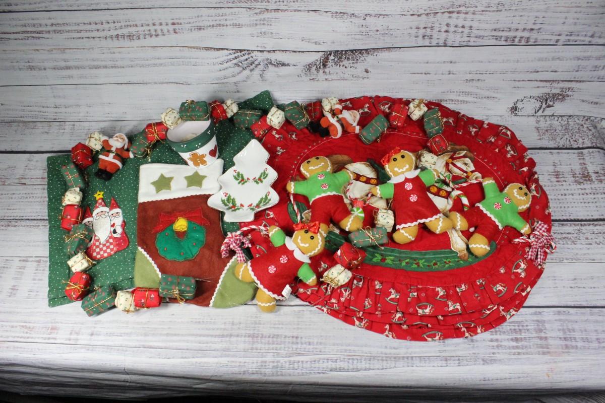 Gingerbread and Santa Decorations, Place Mats, & More, there's no significant damage or tears to any of the pieces. Check pictures for more details.