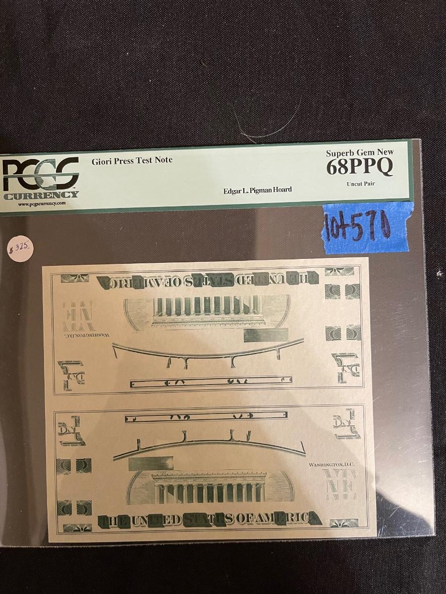 PCGS Cert. Giori Press test note uncut pair gem new 68 PPQ.