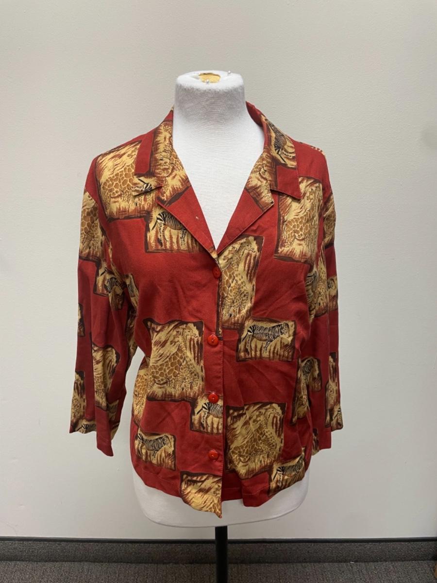 Giraffe and Zebra Printed Cropped X-Large Button Up Shirt