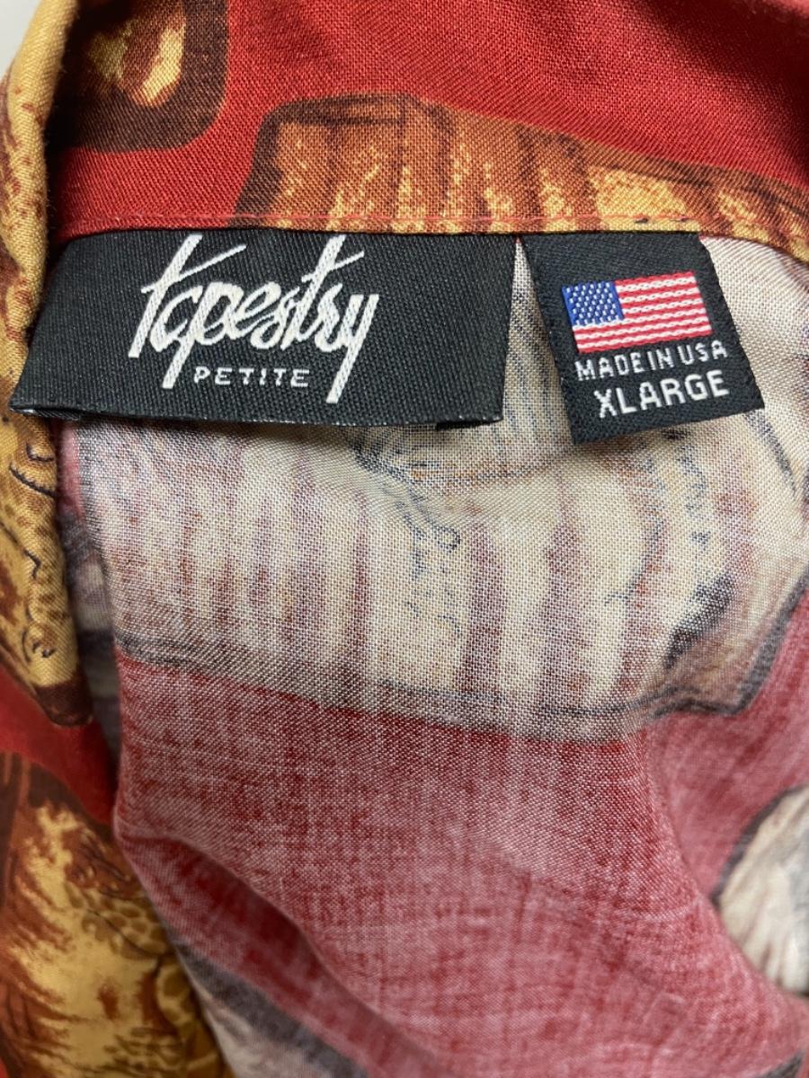 Shirt is in great condition. It is an X-Large and made for more petite people. Sleeves and shirt are cropped. Made in the USA.