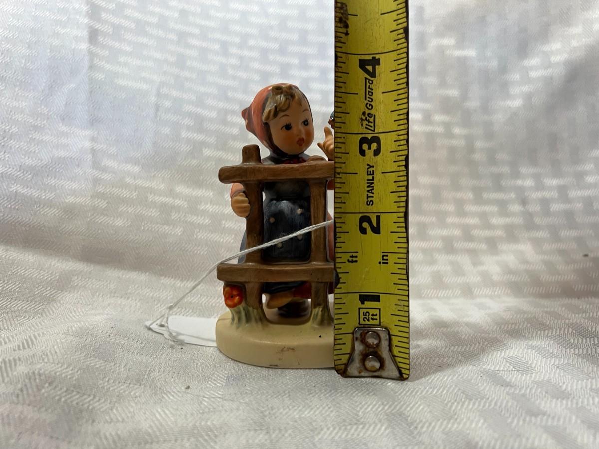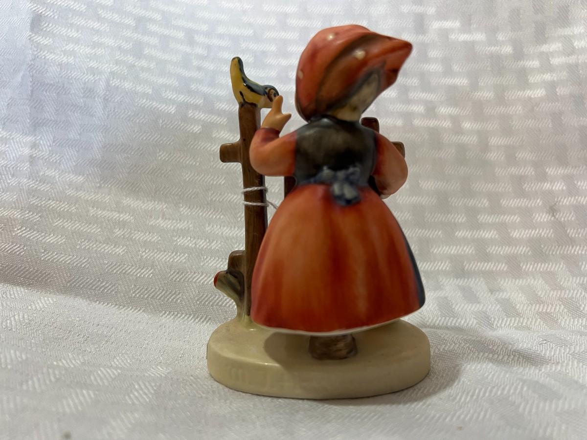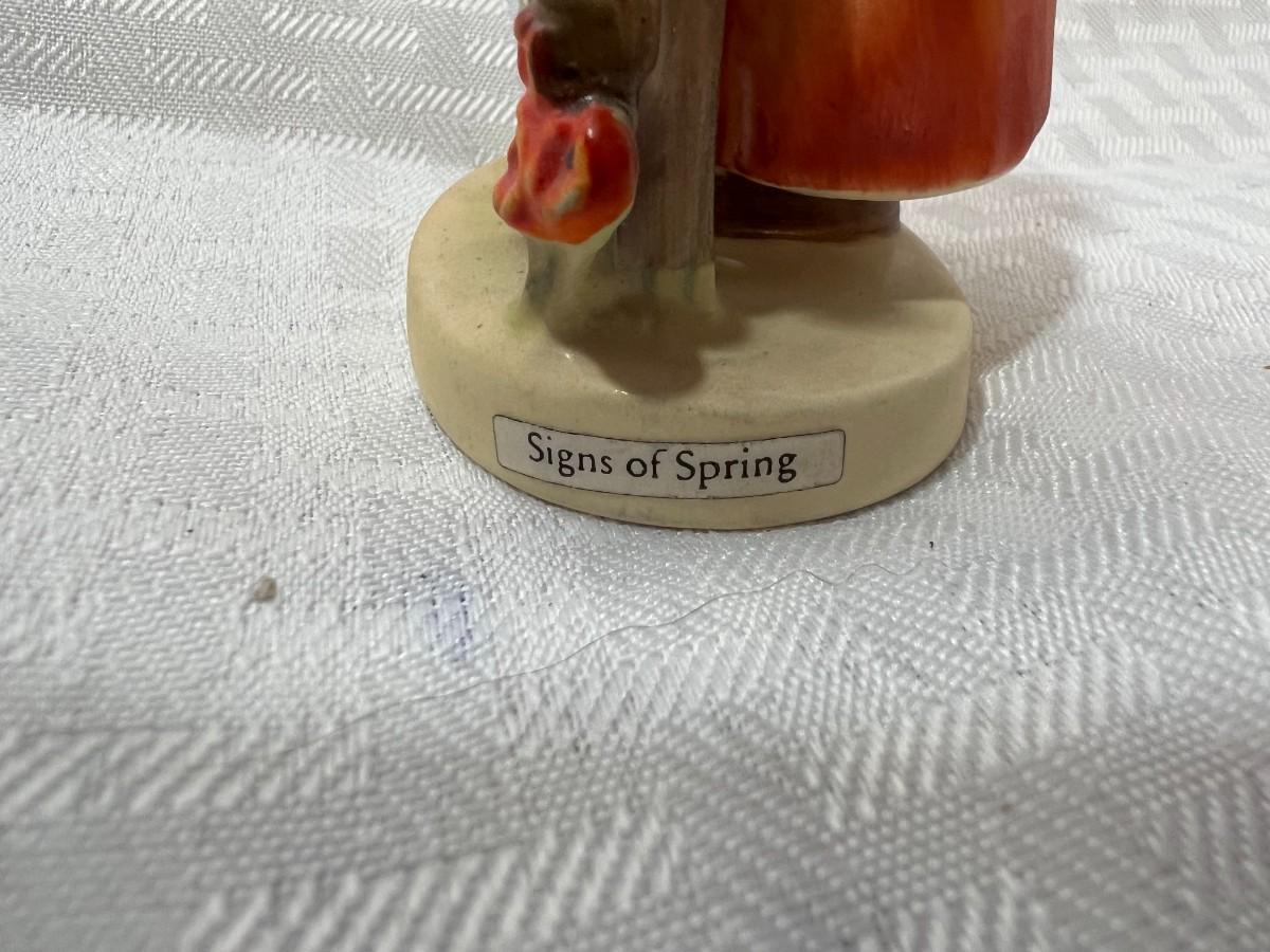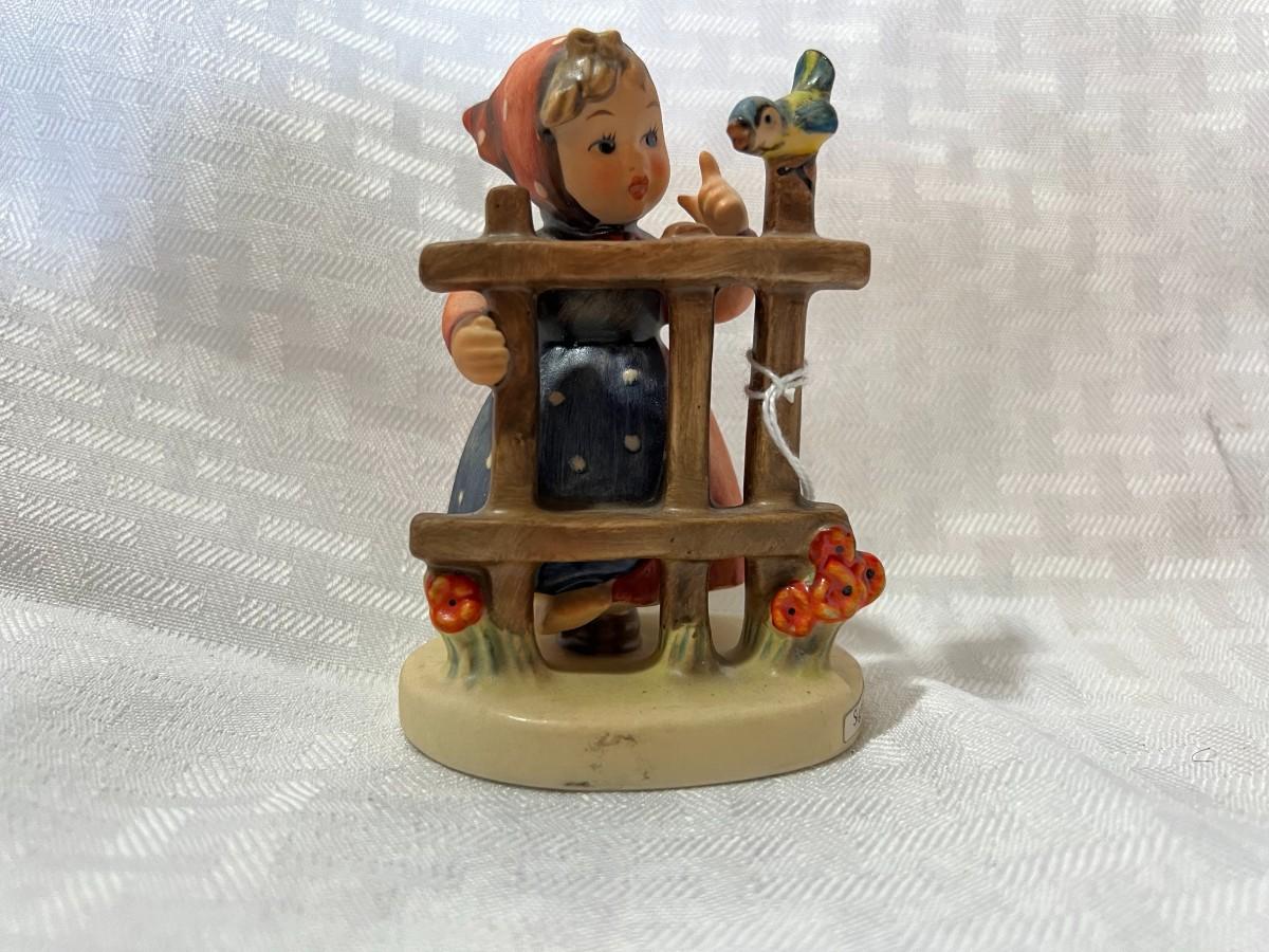 GIRL STANDING BY FENCE WITH BLUE BIRD "SIGNS OF SPRING" GOBEL W. GERMANY 3.5 INCHES M.J. HUMMEL