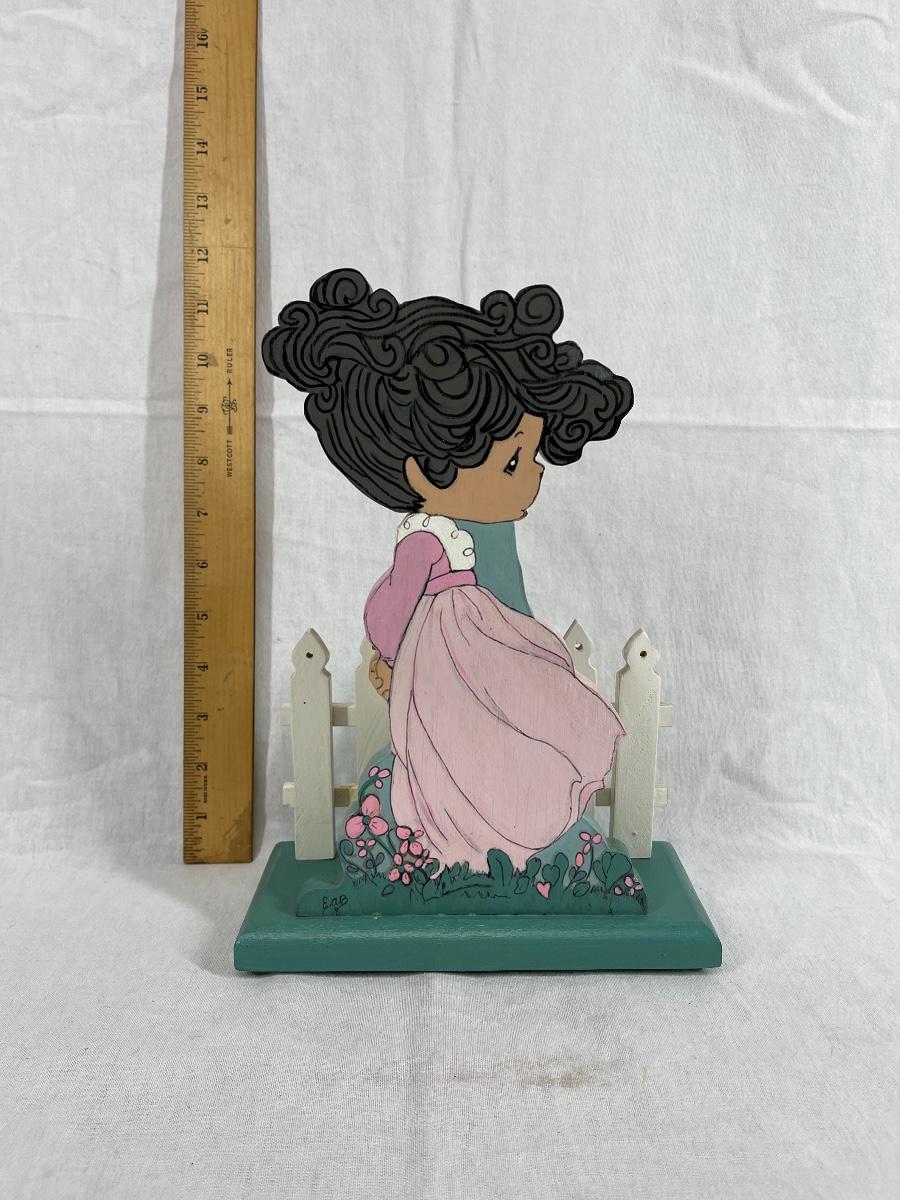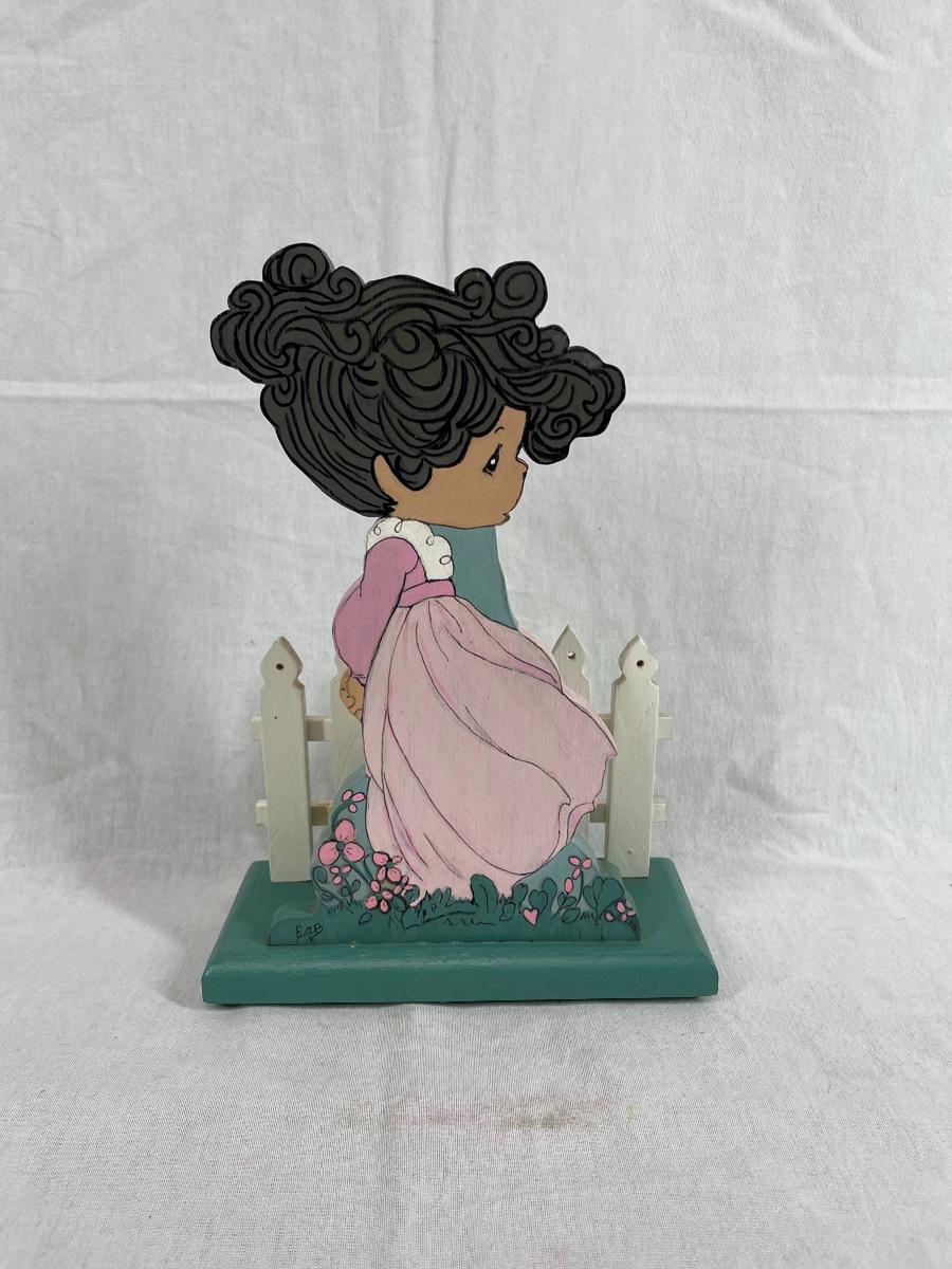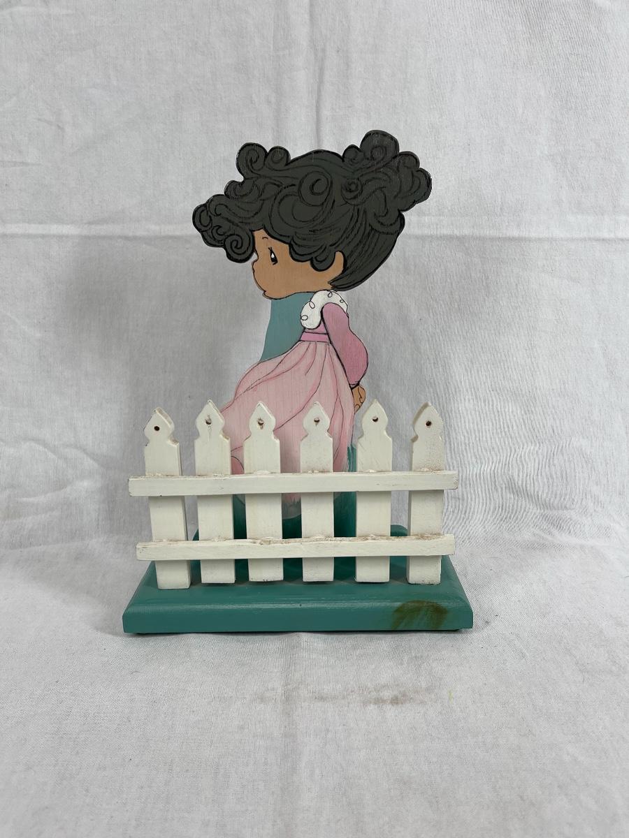 Girl in flower field white picket fence napkin holder