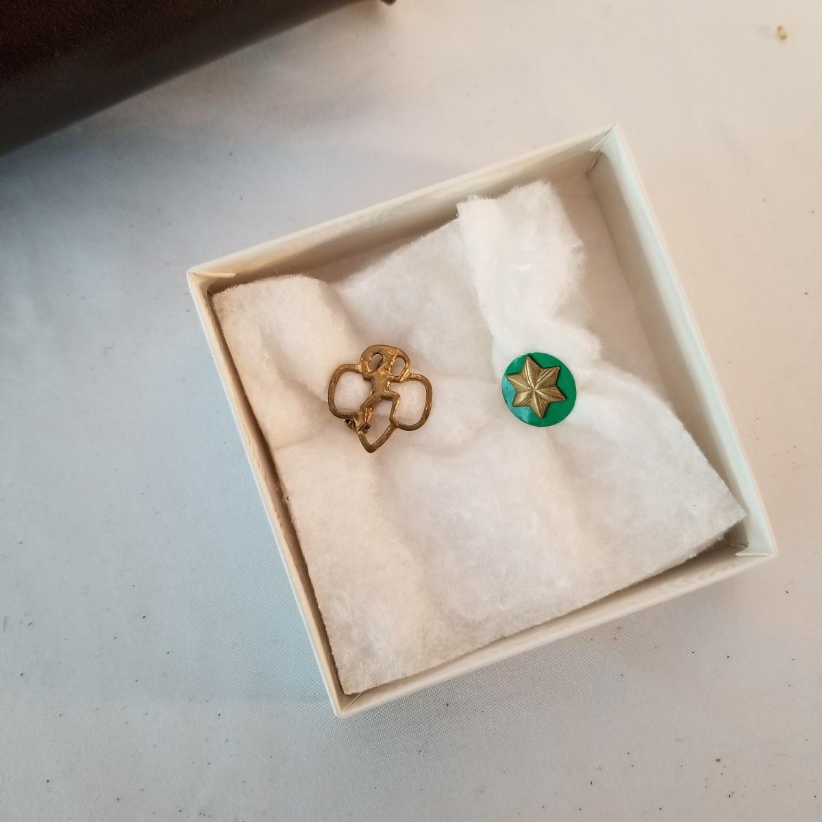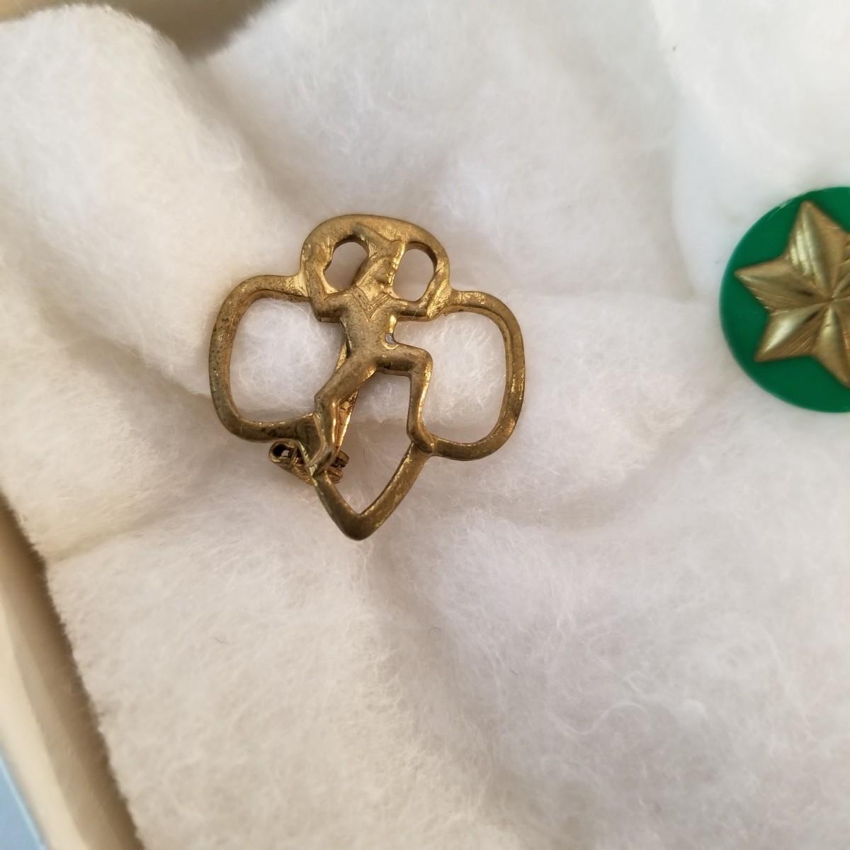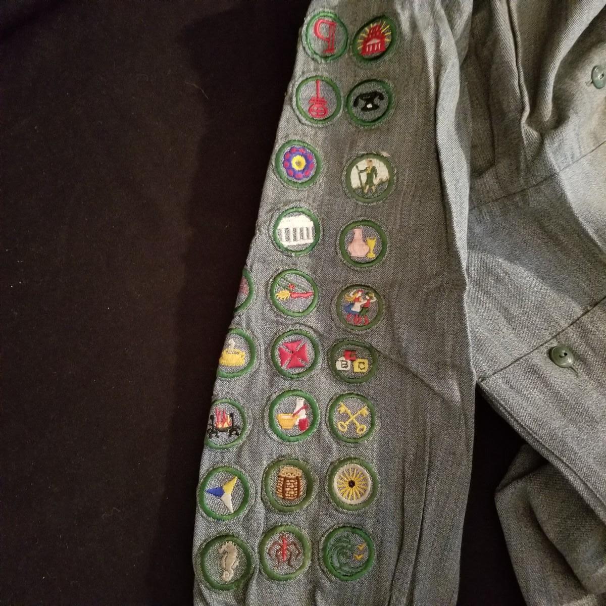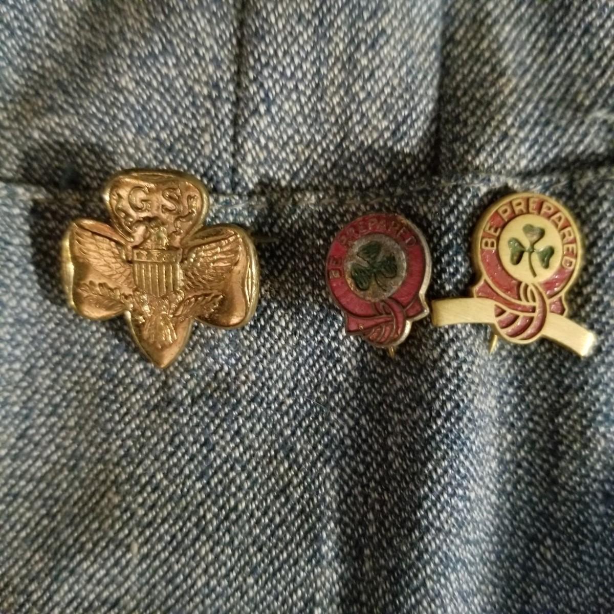 Vintage Girl Scout items. Sweater, scarf, beanie, pins. Handbooks, dress with pins and merit badges, beret, belt, songbook, scarves. See photos for details. Shipping available.