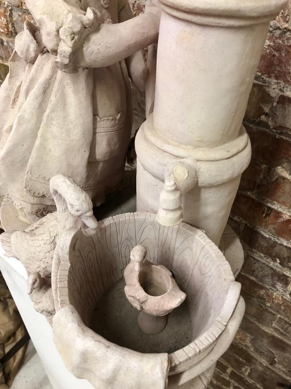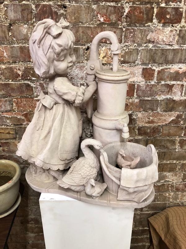 At the waterpump with a goose and a duck in her bucket here is a charming Little Girl Garden Fountain...