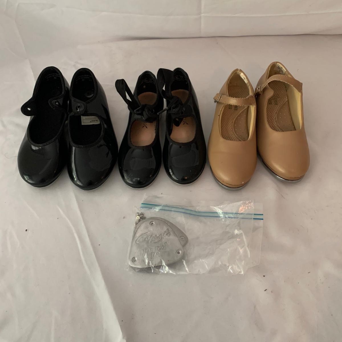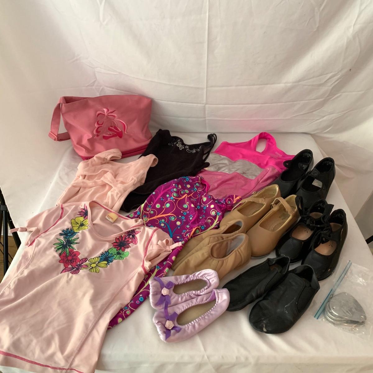 This lot is a perfect starter kit for little girls interested in dance and gymnastics. The lot includes dance leotards, gymnastic leotards, tap shoes, jazz shoes, and more. The clothing is all size Girls Medium (7-8). The lot features brands Capezio, Danskin, Bloch, and more. Most of the pieces are in good condition and have slight signs of wear. Shipping available.
