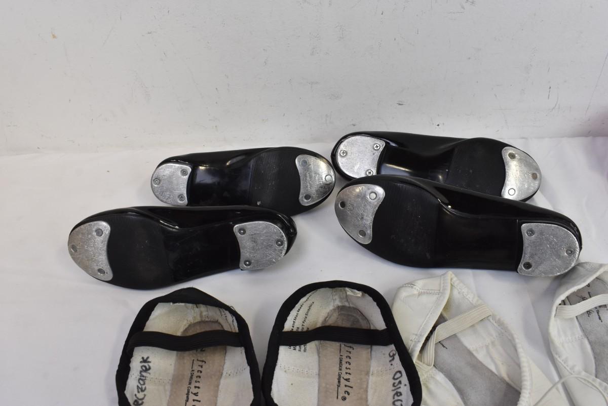 Girls shoes 7 pairs :  sizes 10-12, Ballet, tap  Minnie Mouse crocs